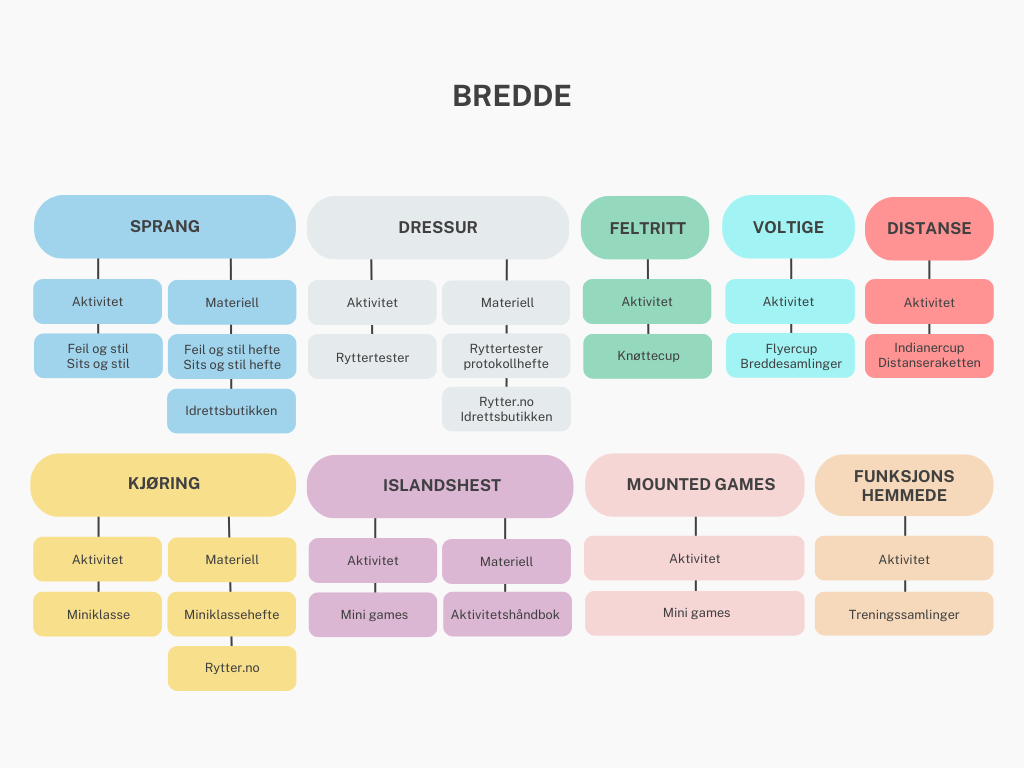 Mangfoldet i hestesporten er stort, det finnes noe for enhver smak. Uansett hvilken gren du vil begynne med finnes det bredde- og rekrutteringsaktiviteter som skal være lagt til rette for nye utøvere og arrangører. Vi i NRYF jobber for å legge til rette for annen aktivitet enn bare konkurranseaktivitet.