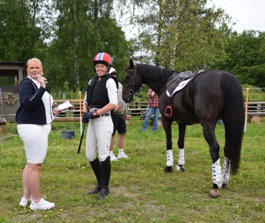 Og mens den store kakefesten for alle fremmøtte fortsatte på Blixland langt utover ettermiddagen, ble også den aller første vinneren av H 100 presentert av Tangen Eventing, Siren Stausland Espeland fra Asker Rideklubb med Herkules kåret.