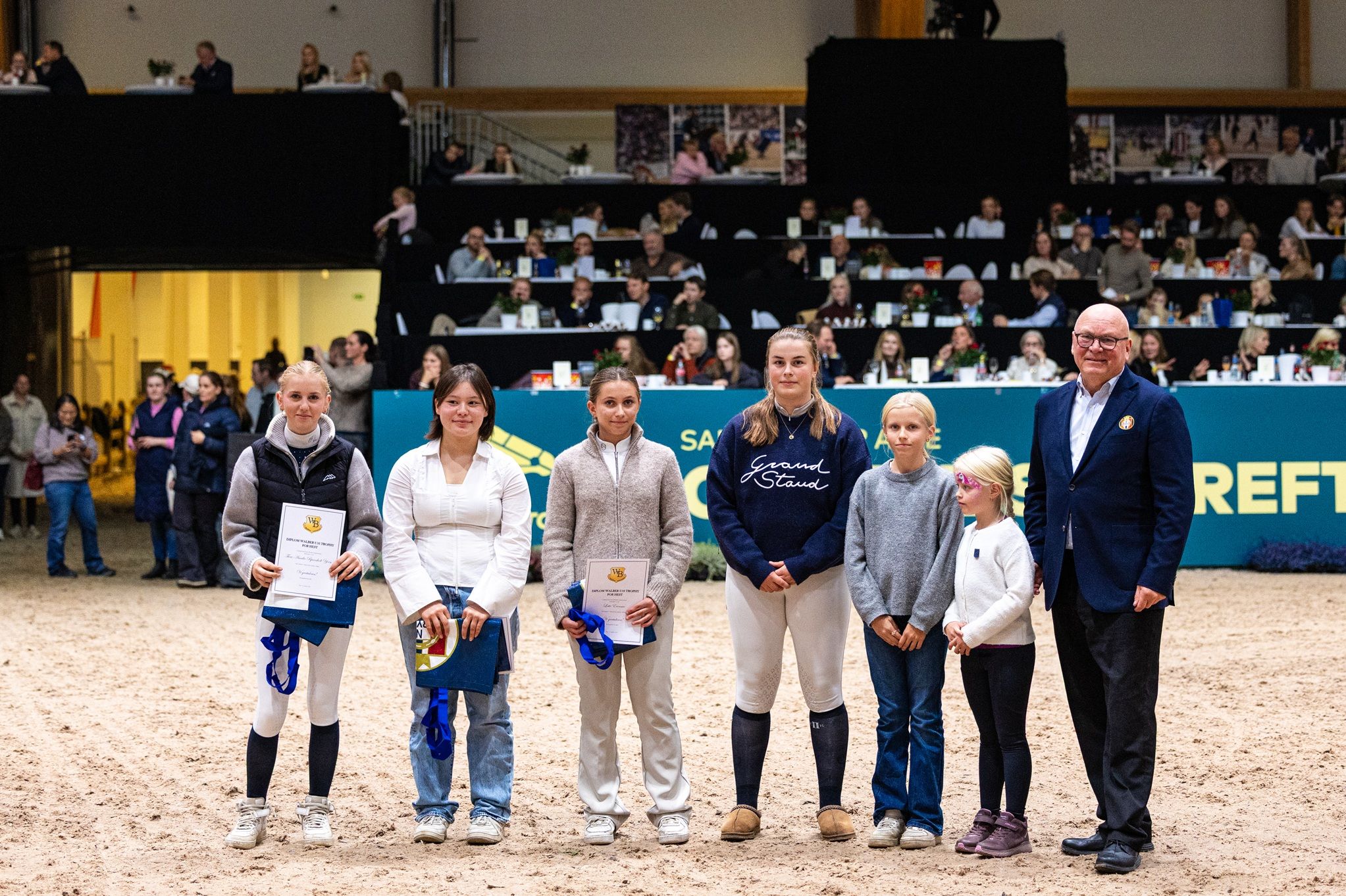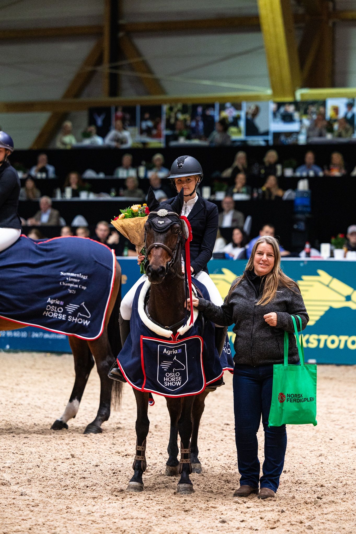 Tradisjonen tro ble årets sammenlagtvinnere av de ulike sprangcupene som har gått gjennom sesongen hedret lørdag under familieshowet ved Agria Oslo Horse Show. Her er sammenlagtvinnerne.