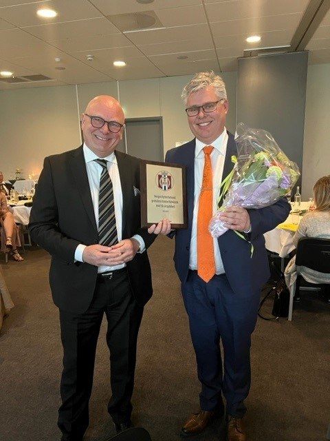 President i Norges Rytterforbund var blant gjestene, og han overbrakte gratulasjoner, blomster og minneplakett til dagens leder Hans Ingar Karlsen.