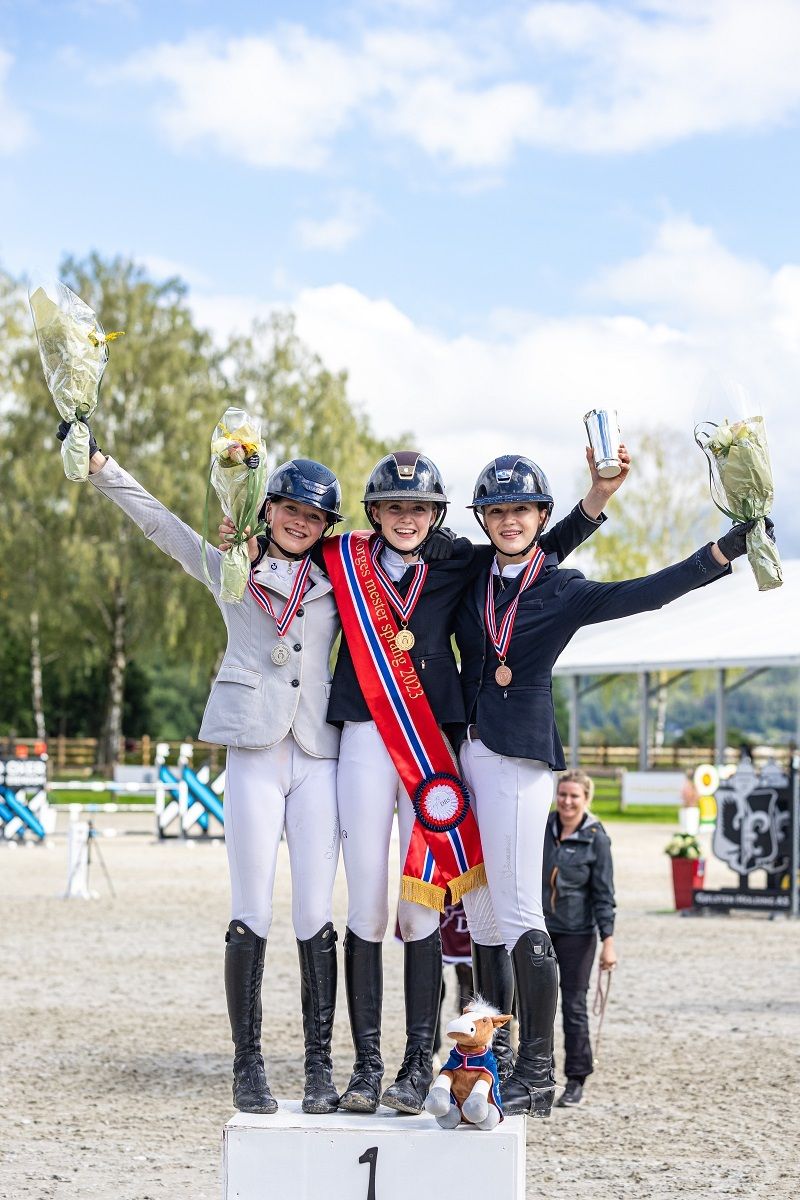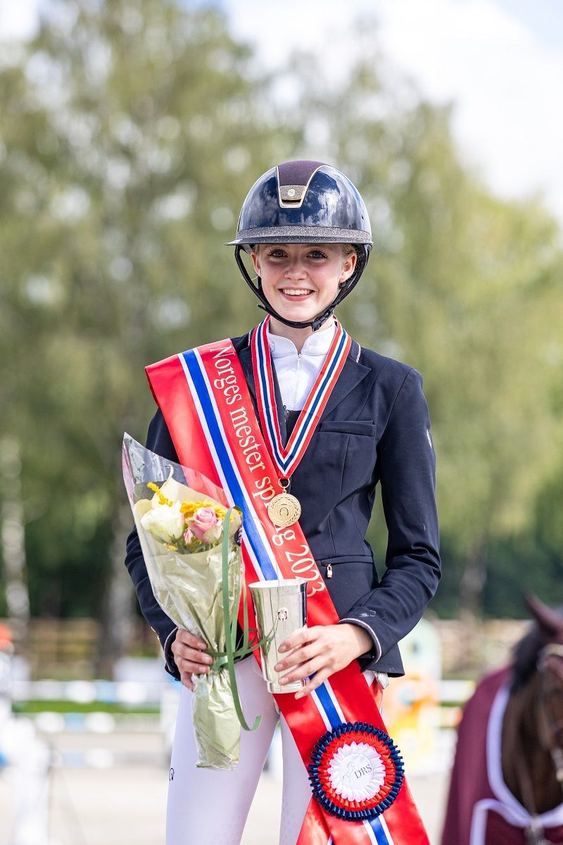 Med Donna Karan har den unge Bergens-rytteren Mie vært suveren i helgens mesterskap. Som den eneste ekvipasjen i klassen med kun nullrunder på Gjelsten Arena i Drammen tok hun et klart gull. Tre ekvipasjer måtte ut i omhopping om sølv og bronse med fire feil etter siste finalerunde over søndagens 1,20/1,25 m høye hinder. Der trakk Madelen Ossletten Fuglstad/Ibalou (Balou du Rouet Z/Highline, oppdretter E. Berkhof Paarden BV) fra Polarsirkelen Hestesportsklubb det lengste strået med en fire feilsrunde og sikret seg sølvet. To ekvipasjer endte på åtte feil i omhoppingen, Maiken Vandbakk Dragerengen/Sancerre (Careful/Rastell, oppdretter Lars-Ole Frøland) fra Skedsmo Rideklubb og Tuva Petrine Kristiansen/B Jingle Star P Z (Big Star JR K Z/Canturna, oppdretter Birdwell Farm) fra Polarsirkelen Hestesportsklubb. Men Maiken hadde tiden til sin fordel og knep bronsen foran Tuva. Femteplassen gikk til Sofia Kingdom-Clark/Coctail (Cardenio/Quick Star, oppdretter Gestüt Lewitz).