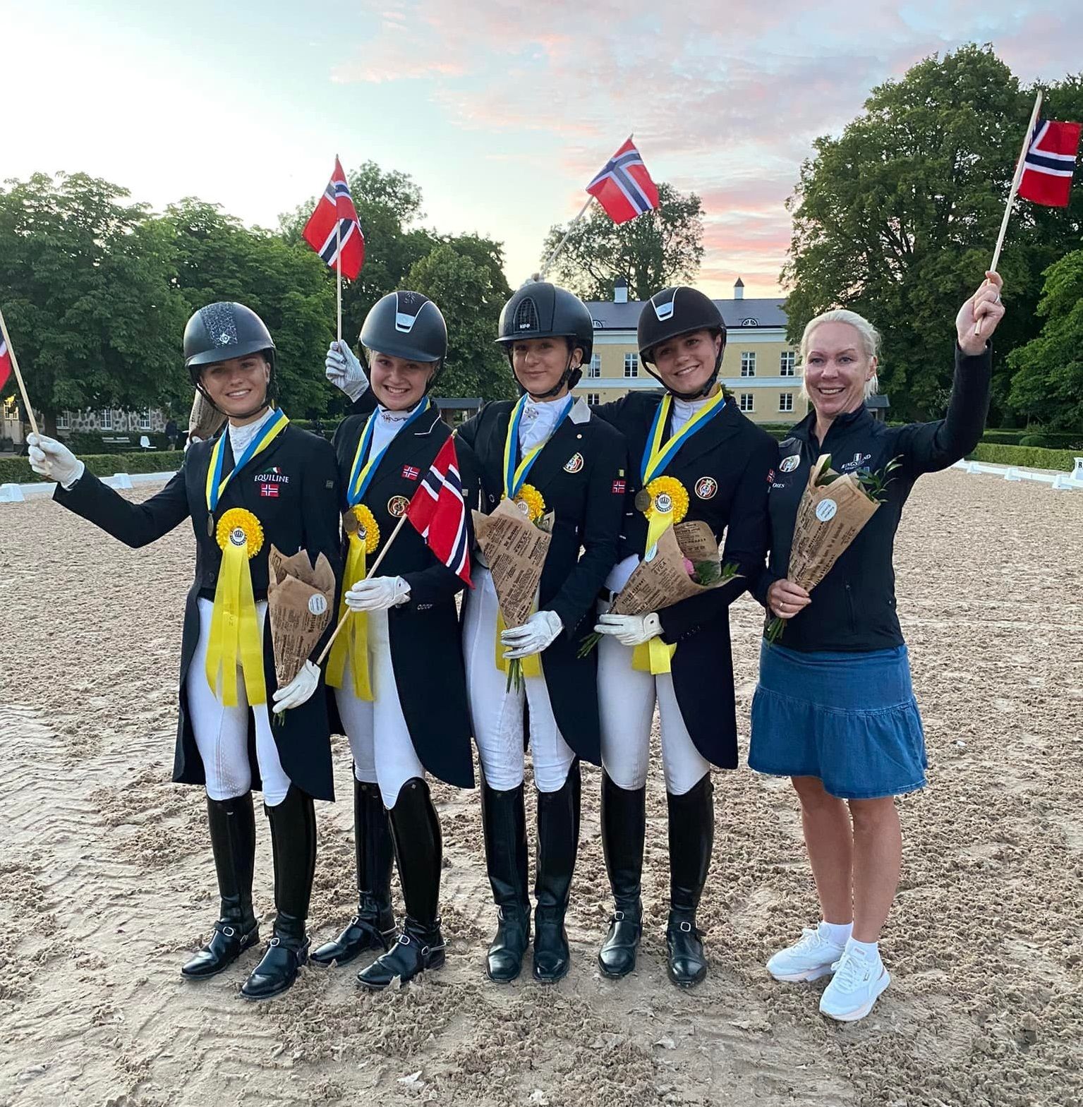 Onsdag kveld på Flyinge Kungsgård sikret det norske UR-laget ved Kristiane Askim Hillern, Nora Windgaetter, Anine Mørch-Aas og Carmen Grønvold Johannessen i dressur ytterligere en bronse til Norge. I dag har UR-rytterne ridd inn gode prosenter i kürfinalen – og kürfinalen for juniorer ble det plassering til Emma Løkken.