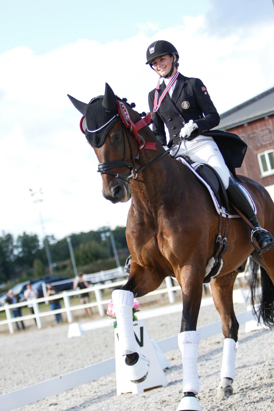 Det var mange flotte ekvipasjer å la øynene hvile på i klassen for unge ryttere – den som gikk helt til topps gjorde det velfortjent etter en herlig freestyle til over 76 %. Årets norgesmester blant unge ryttere ble Carmen Grønvold Johannessen/Højgårdens Santos.