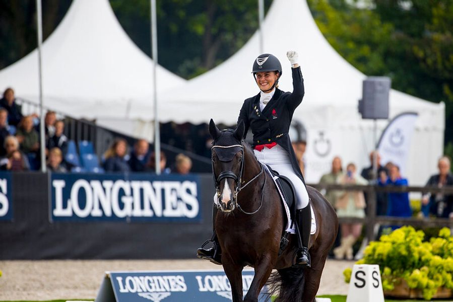 Bettina Jæger innledet med en god tredjeplass i torsdagens kvalifisering: - Etter den trente vi på våre overganger, og jeg var så ivrig på å vise frem hennes kvaliteter her – og det lyktes vi i! Hun er en så glad hest som alltid vil arbeide for meg, med ørene rett fram. Så snart hun setter sine bein inne på arenaen, så er hun «on fire» og gir bare alt!