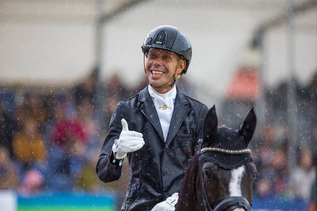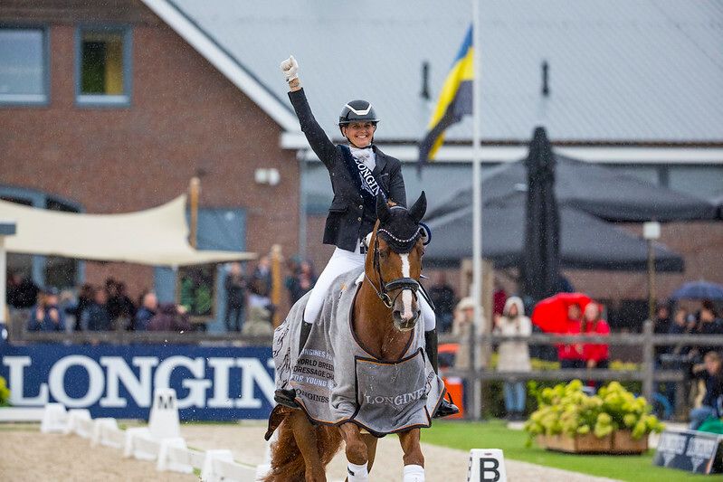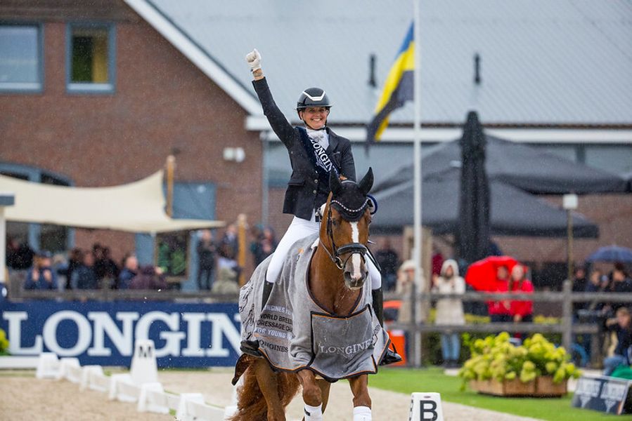Flere ekvipasjer fikk oppleve at himmelens sluser åpnet seg over mesterskapsbanene i nederlandske Ermelo, men det hindret ikke de unge stjerneskuddene i unghest-VM i å skinne. En av årets gjennomvåte ekvipasjer ble vinneren av 6-års finalen, nederlandske Hans Peter Minderhoud med My Toto.