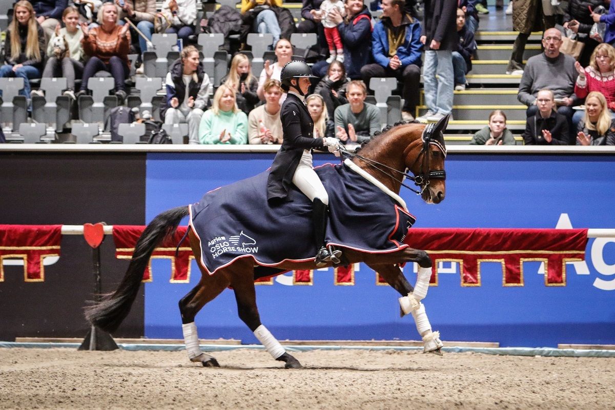 Danske Ida Kirstine Bjørn har hatt en riktig god tur til Norge og Agria Oslo Horse Show – den reisen ga to strake seire på rad. Lørdag danset hun og hennes Hussmans Jackson seg til seier i Intermediaire I kür, foran Helena Liholt Gulli/Tobajo Alippo Lippi.