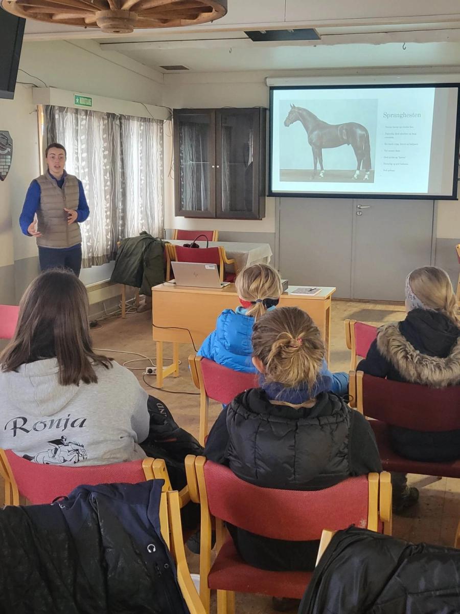 Søndag holdt Cathrine foredrag om hestens eksteriør og gode stallrutiner. - I tillegg var det sprangtrening for Andrew. Siden han kjente Castello litt fra før, var det ekstra spennende å ri for ham igjen.