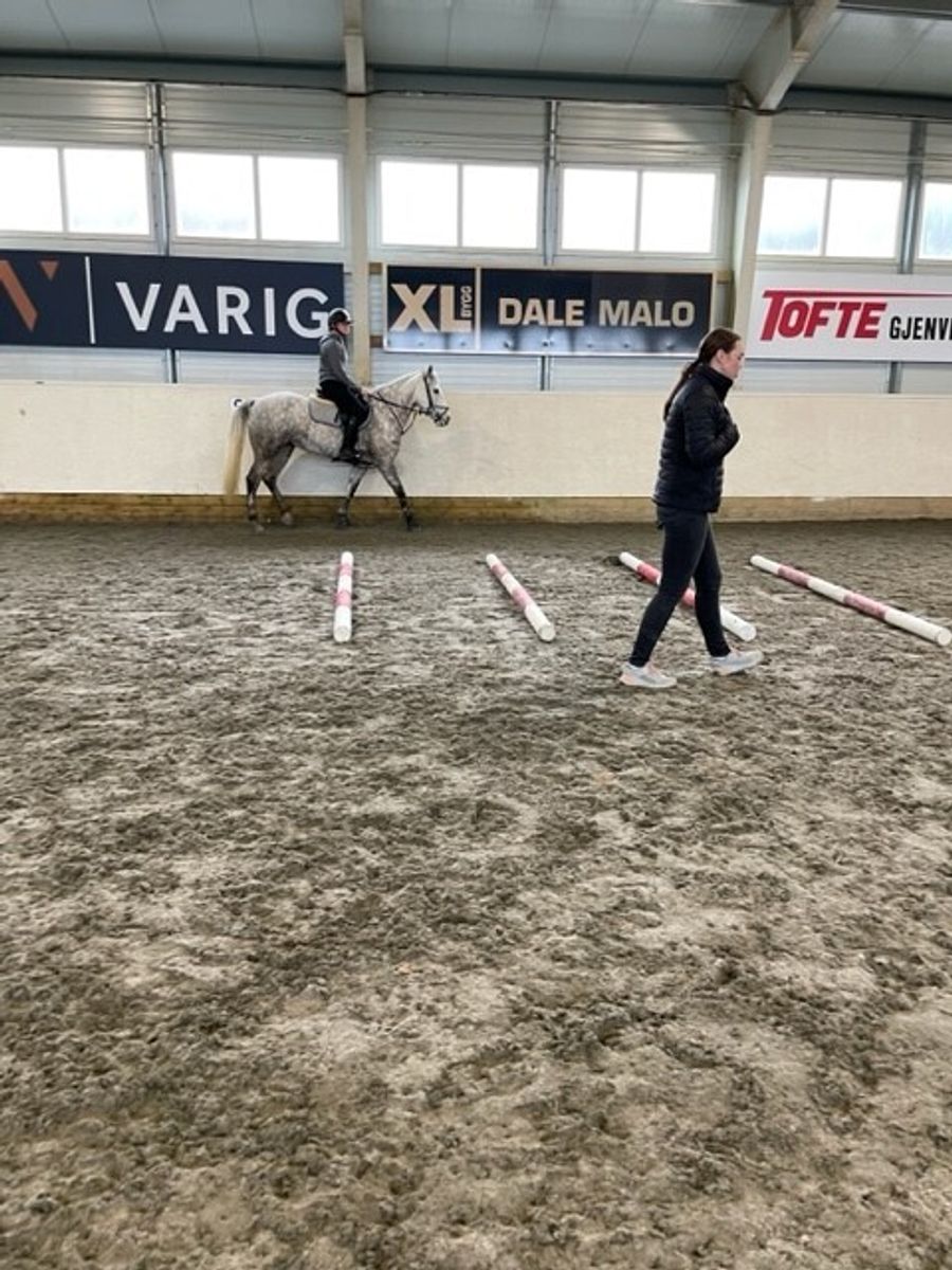 Helgen bestod av både teori og praksis. Lørdag var det bakkearbeid med Cathrine, mens begge trenerne hadde teori sammen. - På kvelden var det mental trening med fokus på hvordan du skal tenke, og hvordan hodene våre fungerer, forteller Malene. - Andrew har veldig gode tips, og fokuserer mye på at vi skal forstå hvordan tankegangen vår påvirker ridningen. Det samme med pusten.