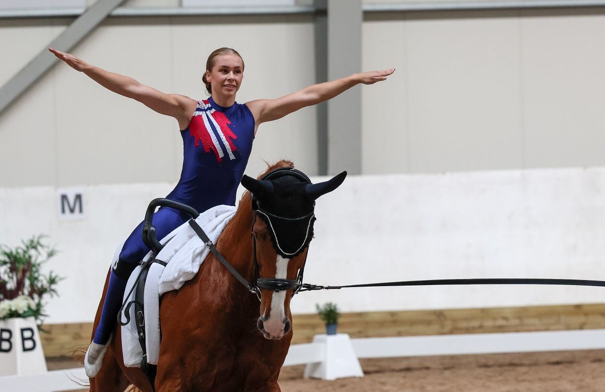I fjor var det Gina Boganes som kapret gullet i juniorklassen. I år har Gina grunnet skade lagt voltige på toppnivå litt på hyllen, men Ginas longør fra fjorårets mesterskap, Kaia Hegre fra Sandnes og Jæren Rideklubb, er minst like aktiv – Kaia kommer! Hun har mange års mesterskapserfaring og stiller til start med flere utøvere som er sultne på å hevde seg i toppen i årets NM.