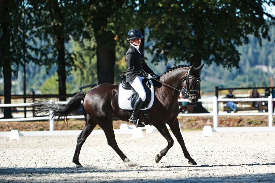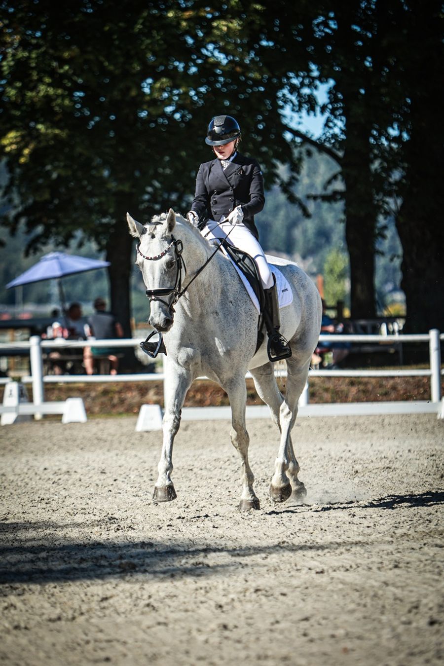 Christelle Amelie Prinz Kolberg med feltets eldste firbente – den 21 år gamle DSP-hoppen Apache – viste seg frem sikkert og jevnt gjennom hele mesterskapet. Ekvipasjen representerer Sigdal og Rosthaug Hestesportslag, og både Christelle og klubben kunne juble over at siffrene 64,661 – 66,825 – 66,611 holdt hele veien til gull.