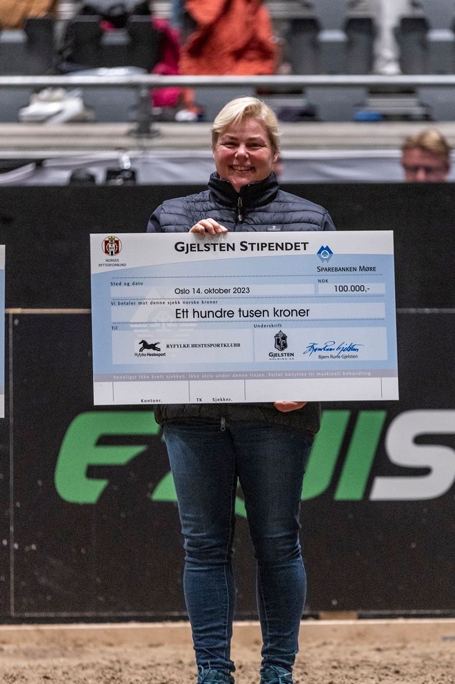 -Det er i våre organisasjoner, i rideklubbene, grunnlaget for ryttersporten ligger, det er her rekrutteringen skjer, rekrutteringen som sørger for bredde som igjen er en forutsetning for en robust topp. Det er rideklubbene som tar imot nye medlemmer og nye ryttere gjennom rideskoler, treninger og ulike klubbaktiviteter, og det er rideklubbene som arrangerer stevner. Den avtalen som Norges Rytterforbund inngikk for fem år siden med Gjelsten Holding er tidenes største samarbeidsavtale, en avtale vi er veldig takknemlige for. Det er all den frivillige innsatsen som belønnes med dette stipendet – og 100 000 kroner vil komme godt med i mange klubbklasser. Vi trenger og ønsker enda flere bærekraftige rideklubber, sa president Tore Sannum som sammen med Lars Kristian Berge fra Gjelsten Holding AS foretok utdelingen i år.