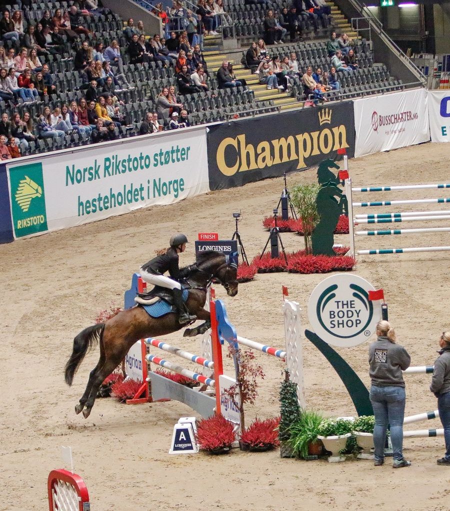 - Vi fikk et riv første dag, og så et stopp og et riv andre dagen. Jeg var litt lei meg da, men ellers var det bra – så nå har det gått over. Det føles veldig, veldig fint å ha fått både sløyfe og et vinnerdekken, sier Else-Victoria som deltar i Kingsland Oslo Horse Show for første gang.