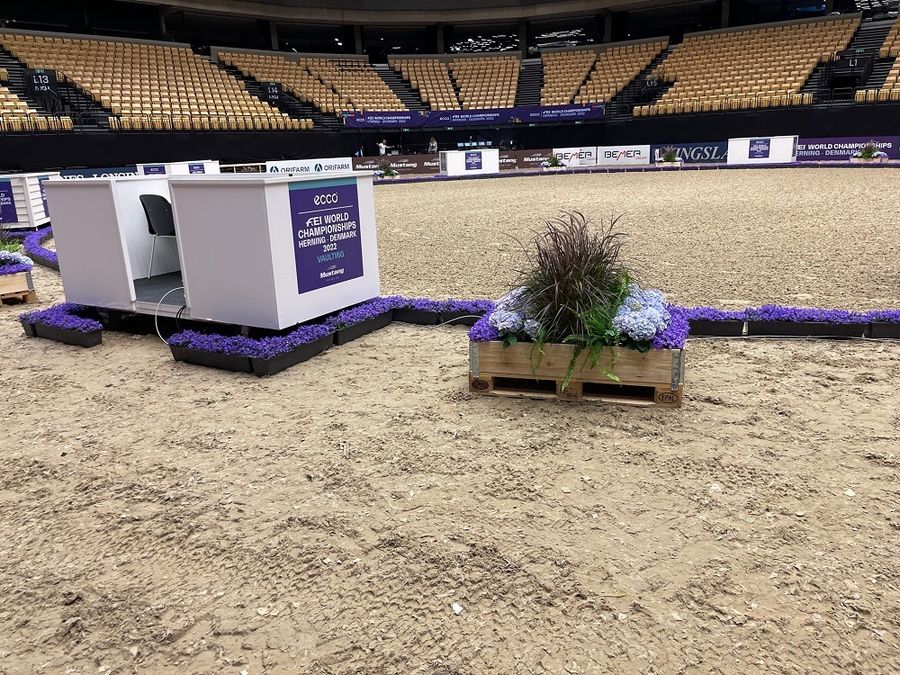 -Vi fikk mange forskjellige oppgaver. Ettersom jeg var der fra mandagen før det startet, så jeg var med på å sette opp teltene på campingen. Så kom hestene fra tirsdagen av, jeg plukket møkk og stoppet trafikken ved hovedinngangen. Når hestene skulle få trene i arenaen, såkalt «familiarization», da måtte vi stå i oppgangen, vi stod ved kameraene – alt for at hestene skulle oppleve det som realistisk. Jeg var også med på å bygge railen til dressuren – og det var en stor oppgave! Vi var 50 stykk som jobbet med det – og det tok flere timer! Alt skulle være helt korrekt; vinkler, blomster – det er en kjempejobb å sette opp dressurrailen, forteller Kristine.