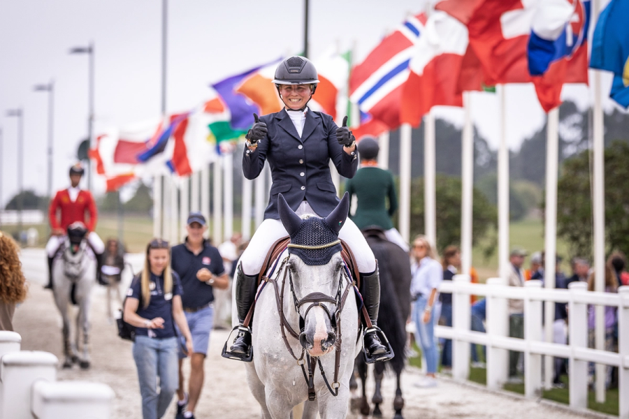 - Det er alltid kjekt for rytterne å kjenne litt på hvordan hestene er, og hvordan formen er fortsetter han. - Men jeg synes alle hestene så veldig bra ut i dag, og alle rytterne presterte også veldig, veldig bra i dag, så vi er egentlig veldig godt fornøyde. Nå tar vi bare en dag om gangen videre. Jeg synes jeg så noen lister her nå hvor laget sammenlagt ligger som nummer ni etter første dag. Og det er jo klart, vi vil jo gjerne være blant de ti lagene som går videre til finalen på fredag, og vi vil jo også gjerne ha individuelle deltakere med videre på fredag, så vi får se hva morgendagen bringer. Men det er altså veldig kjekt å endelig være i gang, avslutter han.