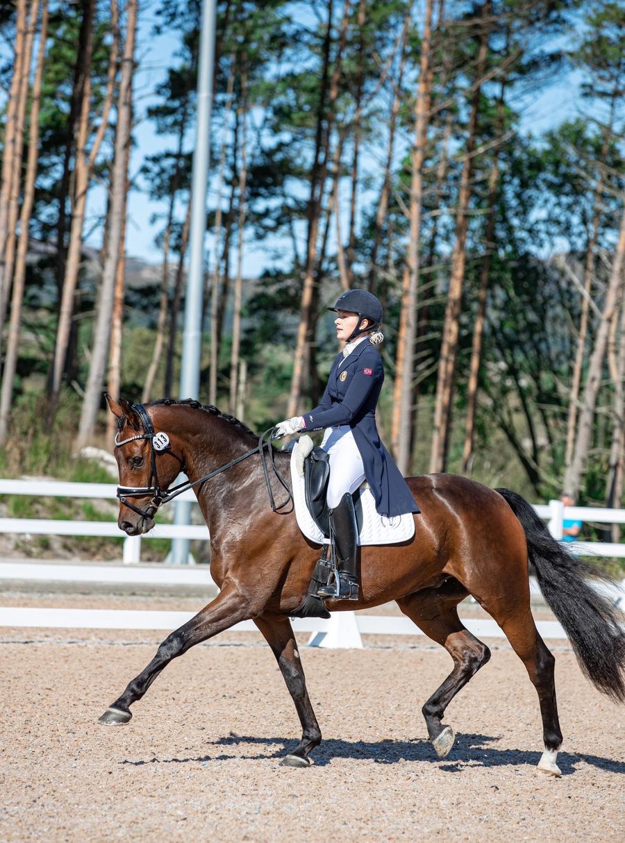 – Han er helt perfekt til meg. Kjempesnill og rolig på bakken, jeg rir fredelige barbakturer – og når jeg legger på dressursalen, så setter han inn et ekstragir, blir nesten eksplosiv. Han er alltid på jobb, har alltid energi, alltid toppede ører. Han kan bli litt stresset, men får han brukt det positivt …