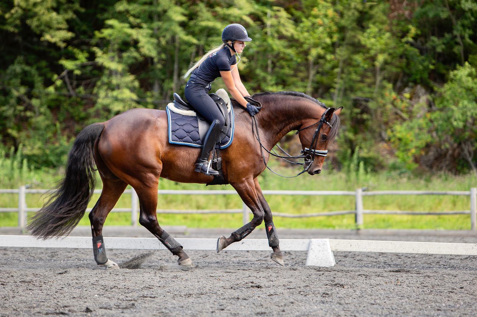 Rytteren forteller at grunnen til at det ble dressur som har hovedfokus mye skyldes moren hennes. – Hun har jo drevet litt med hest, og hun tenkte at det var lurt å kunne dressur. Derfor ble det dressur i starten, og det var det vi fikk best til, smiler hun.