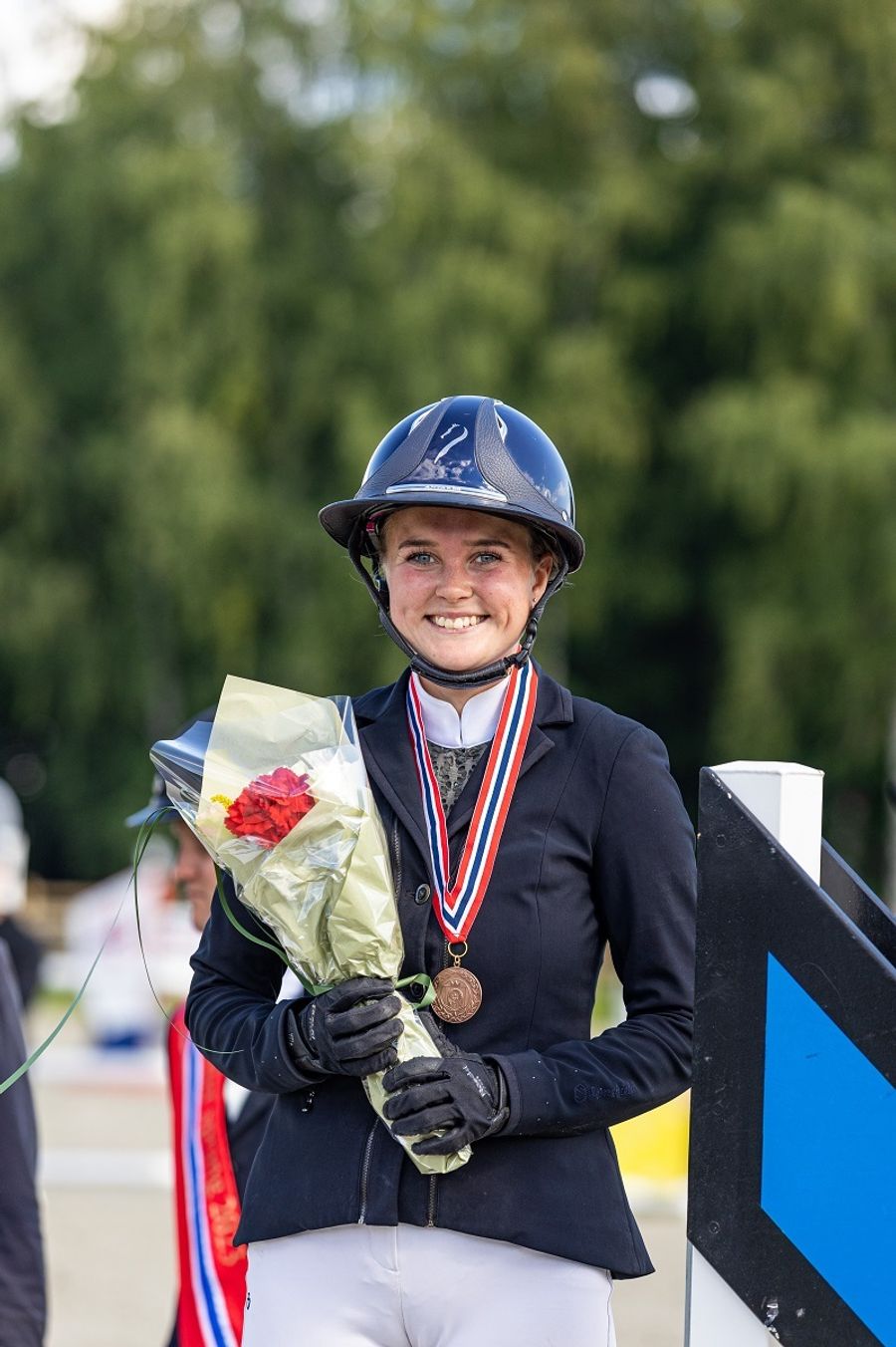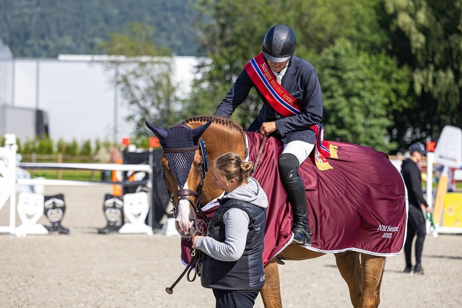 -Jeg er veldig fornøyd, hesten hoppet fantastisk – og jeg er fornøyd med min ridning også, slår den ferske mesteren fast etter et svært godt gjennomført mesterskap.