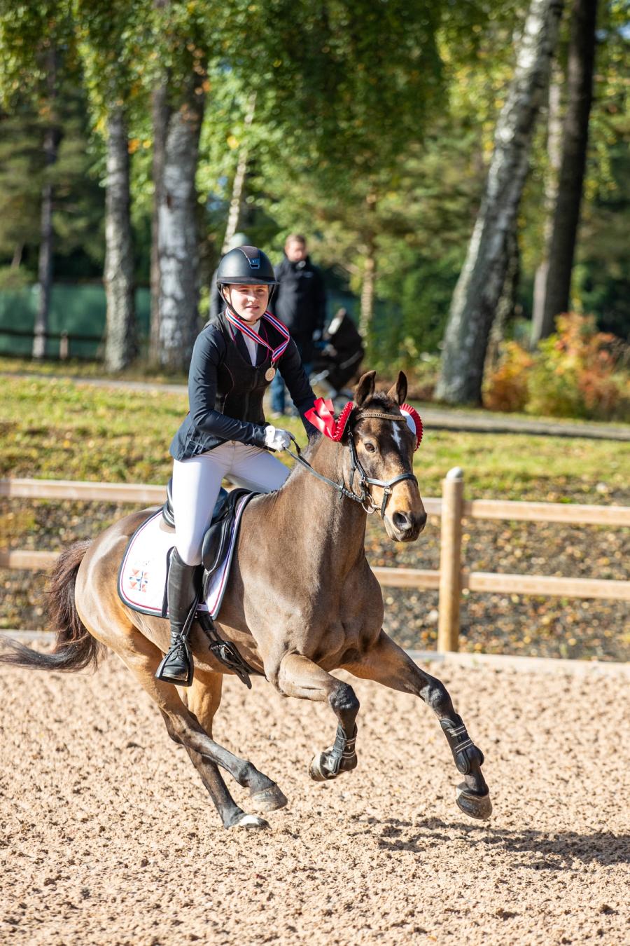 Sist ut av alle på sprangbanen denne søndagen som foreløpig individuell leder av mesterskapet etter at de to første delprøvene var strålende gjennomført, var Dina Fladeby og Shadow. Spenningen varte med andre ord til aller siste slutt, ikke minst fordi de to kunne tåle ett riv og likevel sikre toppen av pallen, men ikke to. Underveis måtte den 15 år gamle rytteren, som blant annet var med og sikret laggull for Skedsmo Rideklubb under NM for kort tid siden, dessverre se to bommer falle – først på hinder nummer fire, en rekk, og deretter på hinder nummer åtte, en okser. Dermed sikret Dina et flott individuelt NBC-sølv med 35.1 i straff - i hard konkurranse til det siste med gullvinner Liva Emilie Grubbe på AC-Star Quickie af Engvang og bronsemedaljør, svenske Julie Axell Bramervär på Odden’s Replay.