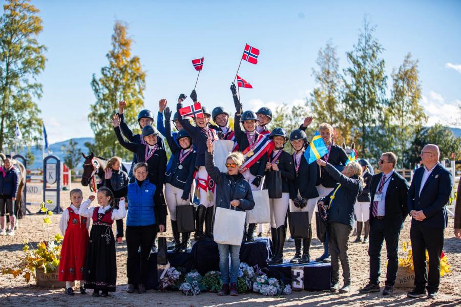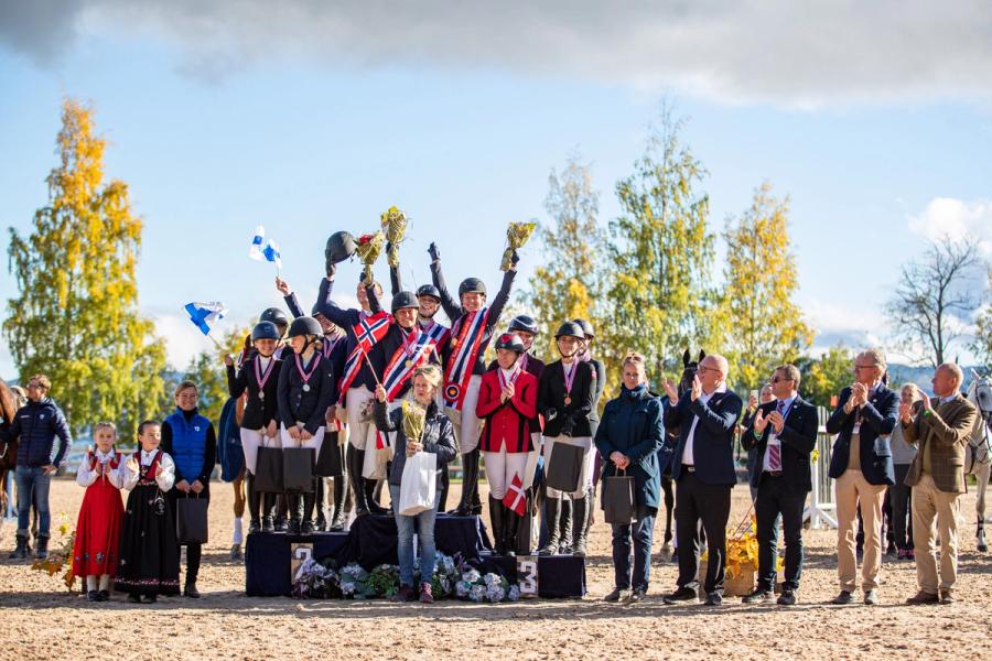 Og helgens norske medaljefest, den bare vedvarte på Starum. Så snart lagresultatene ble kontrollregnet og offentliggjort, ble det nemlig også klart at Norges seniorer ikke bare hadde sikret pallplass og medaljer, men til overmål vel fortjent kunne ta steget helt til topps på pallen som nordiske lagmestere i feltritt med 129.3 i straff. Finlands lag kunne på sin side slippe jubelen løs over å ha sikret sølv med 139.6 i straff, mens Danmark hoppet inn til bronse med 146.1.
