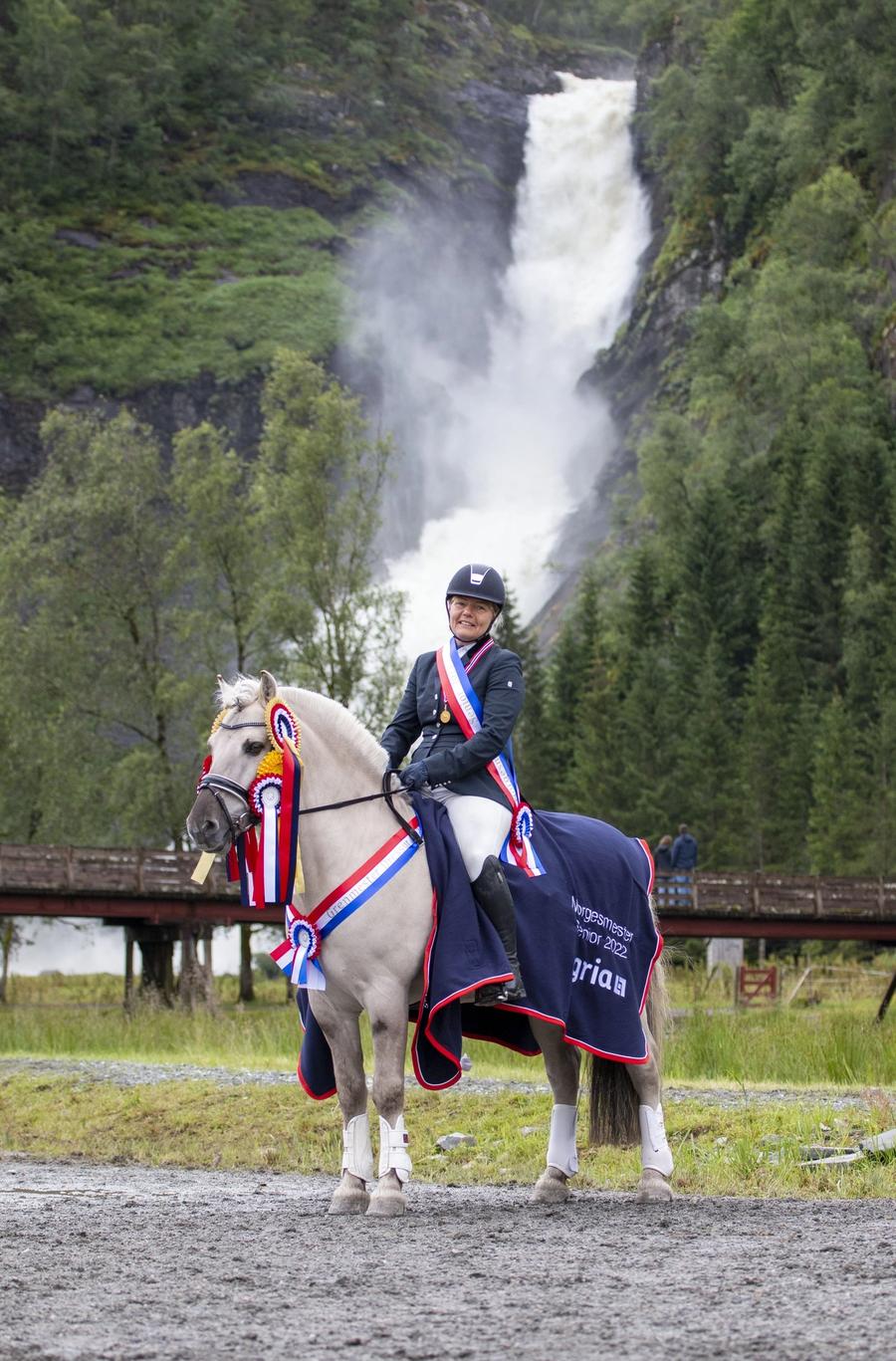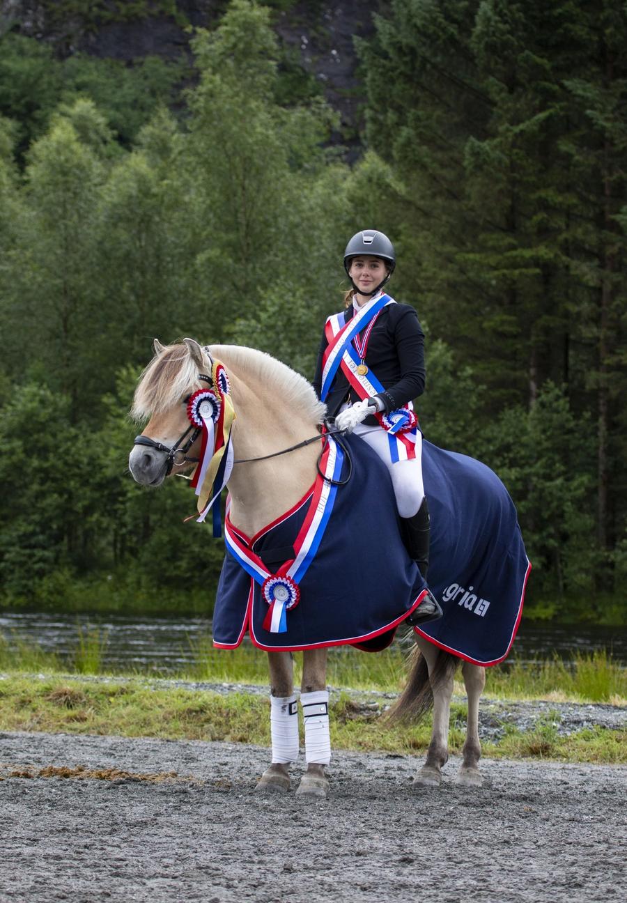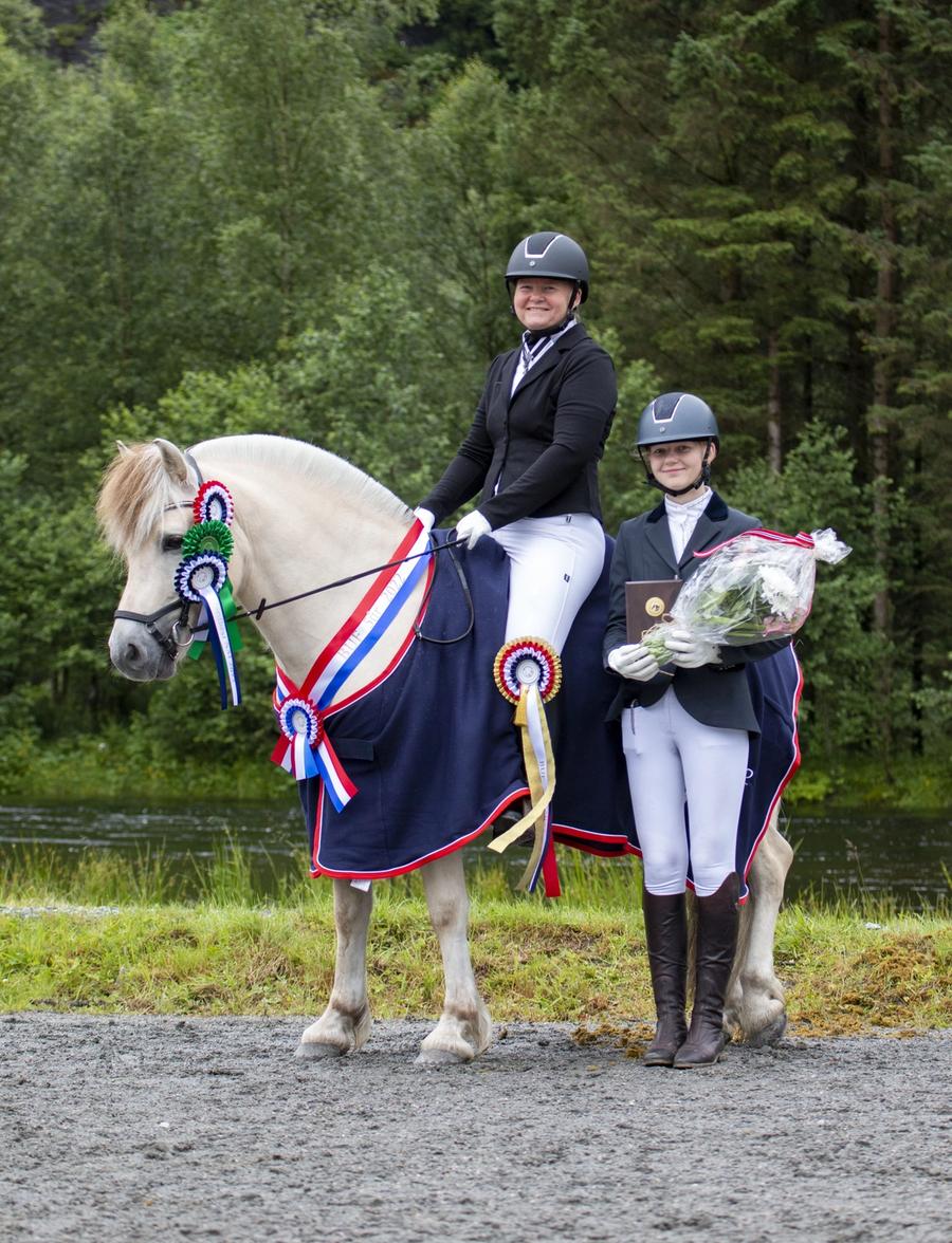 De gjorde det. For med seier på sprangbanen lørdagen da det hele skulle avgjøres, ble gullet sikret med 25 poeng – og dermed også med grei margin ned til sølvvinner Sylvia Kallekleiv med Sires Leander fra Oslo og Akershus Fjordhestlag på 21 poeng og bronsevinner Liv Jorunn Nyhagen med Soltuns Trym fra Volda Rideklubb med 20.