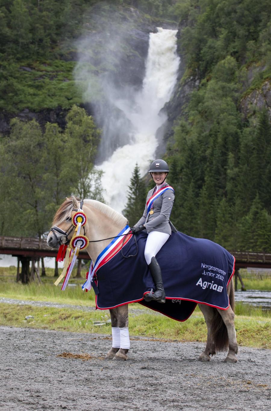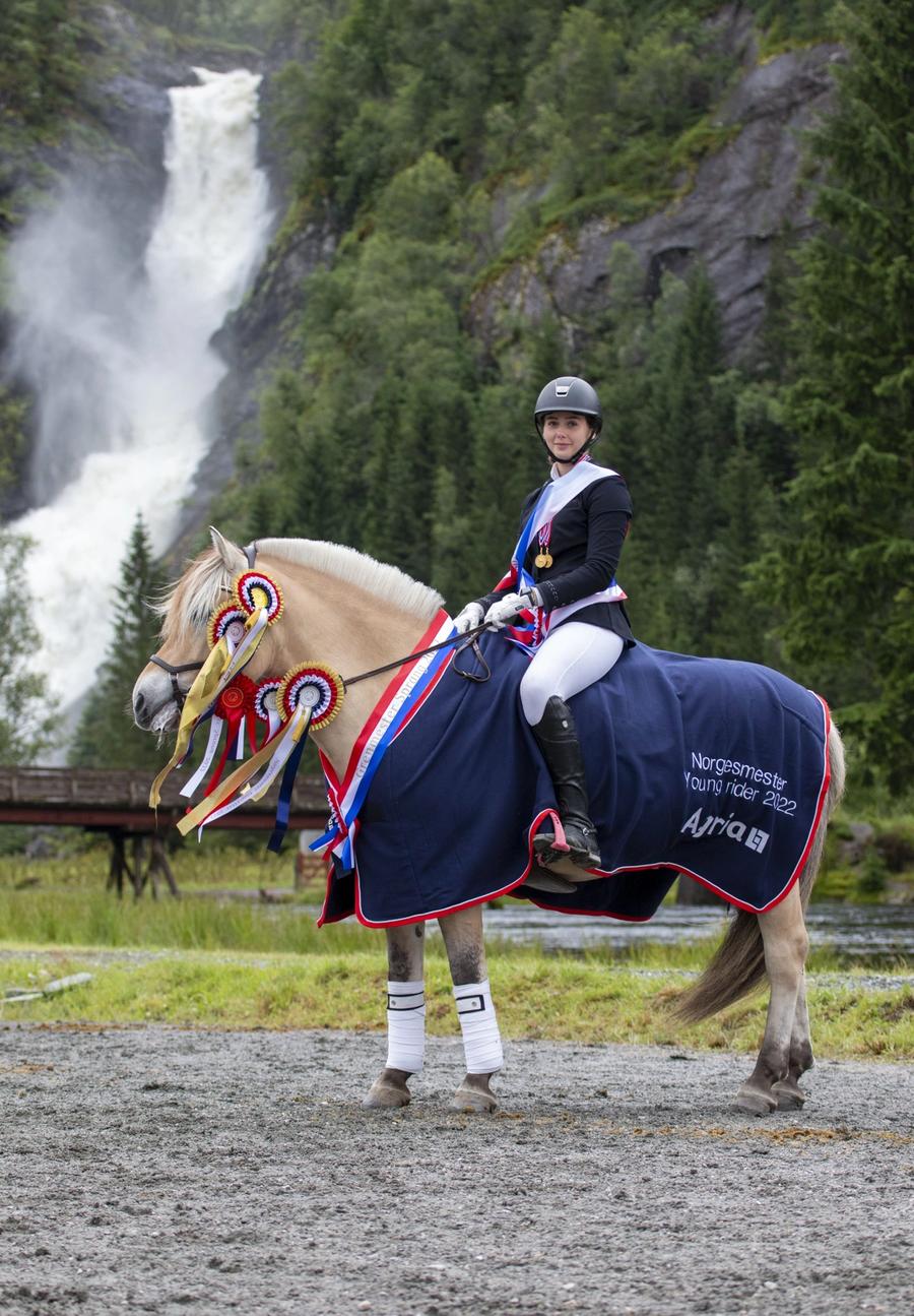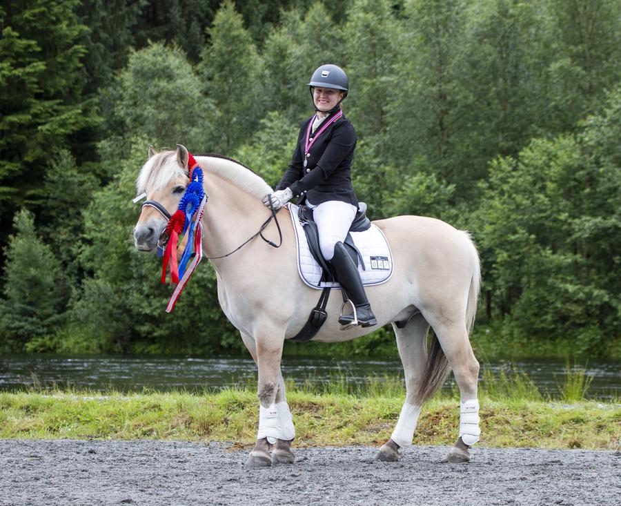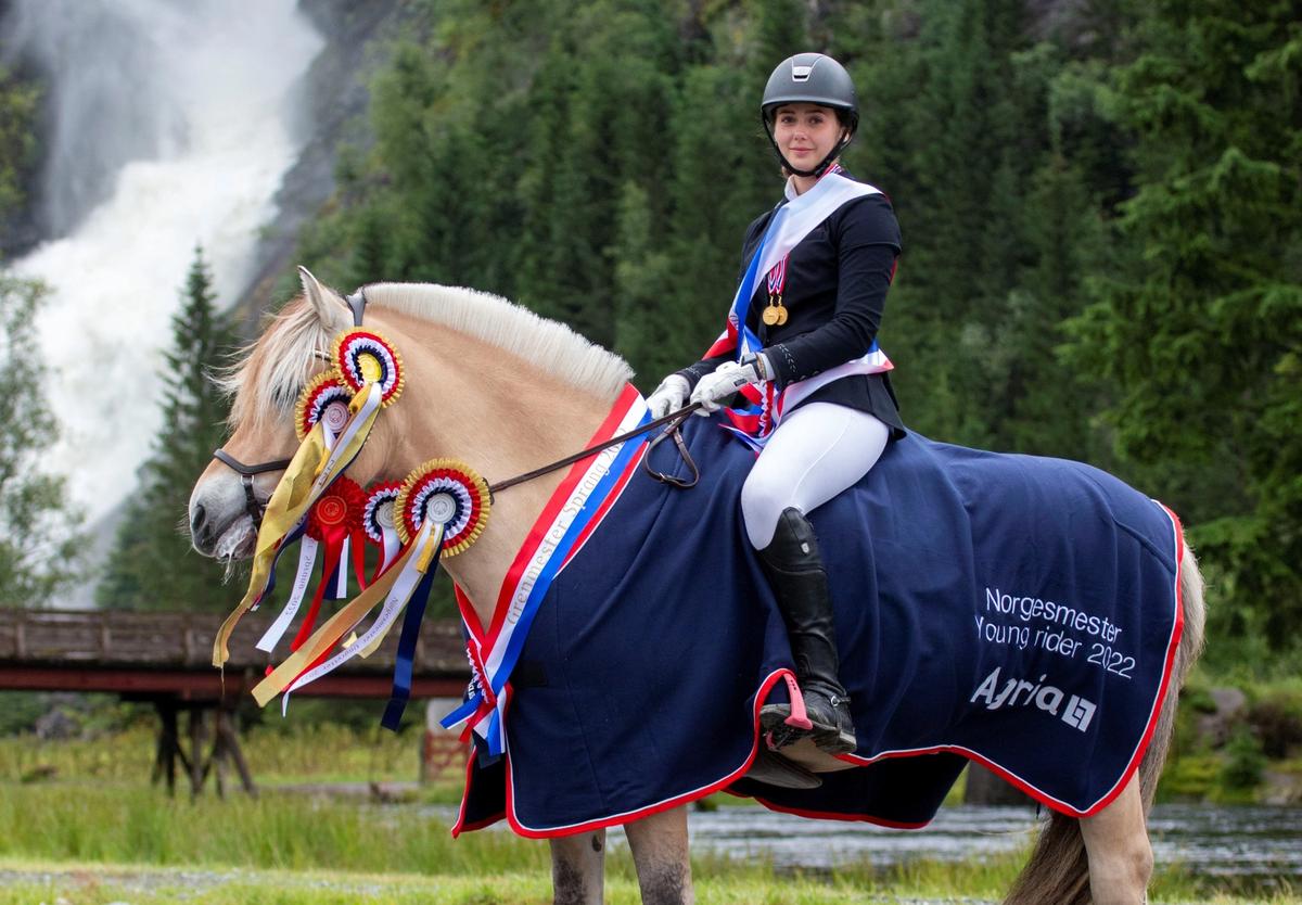 De gjorde det. For med seier på sprangbanen lørdagen da det hele skulle avgjøres, ble gullet sikret med 25 poeng – og dermed også med grei margin ned til sølvvinner Sylvia Kallekleiv med Sires Leander fra Oslo og Akershus Fjordhestlag på 21 poeng og bronsevinner Liv Jorunn Nyhagen med Soltuns Trym fra Volda Rideklubb med 20.