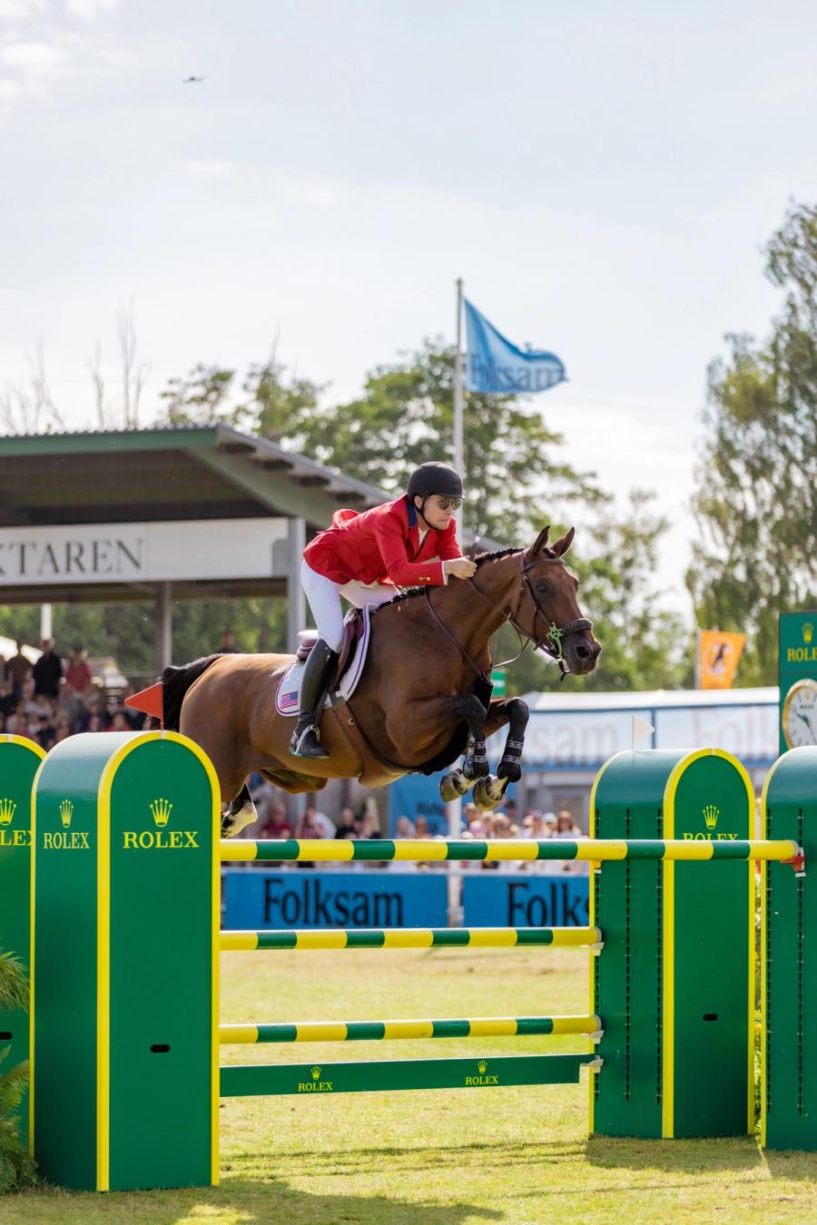 - Jeg red jo hesten i under Norway Grand Prix-stevnet i Drammen i juni og var plassert i Oxer Grand Prix'en der, men runden her i Falsterbo var jo virkelig stepping up. For dette er jo femstjerners i 1.60 m og del av Rolex Series, forklarer Geir Gulliksen etter målgang. – Og det var virkelig heavy stuff, det kan jeg love. Men det var faktisk litt leit at jeg ikke kom med blant de 13 som gikk videre til finalen, for vi var nærmere null enn fire feil i dag, for å si det sånn, legger han smilende til.