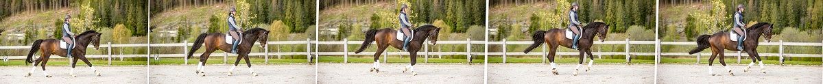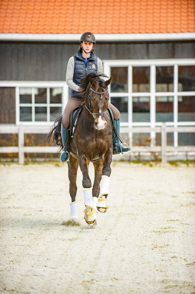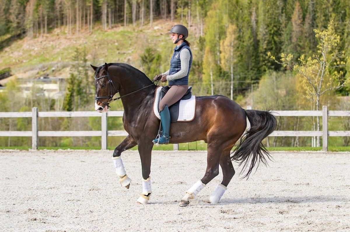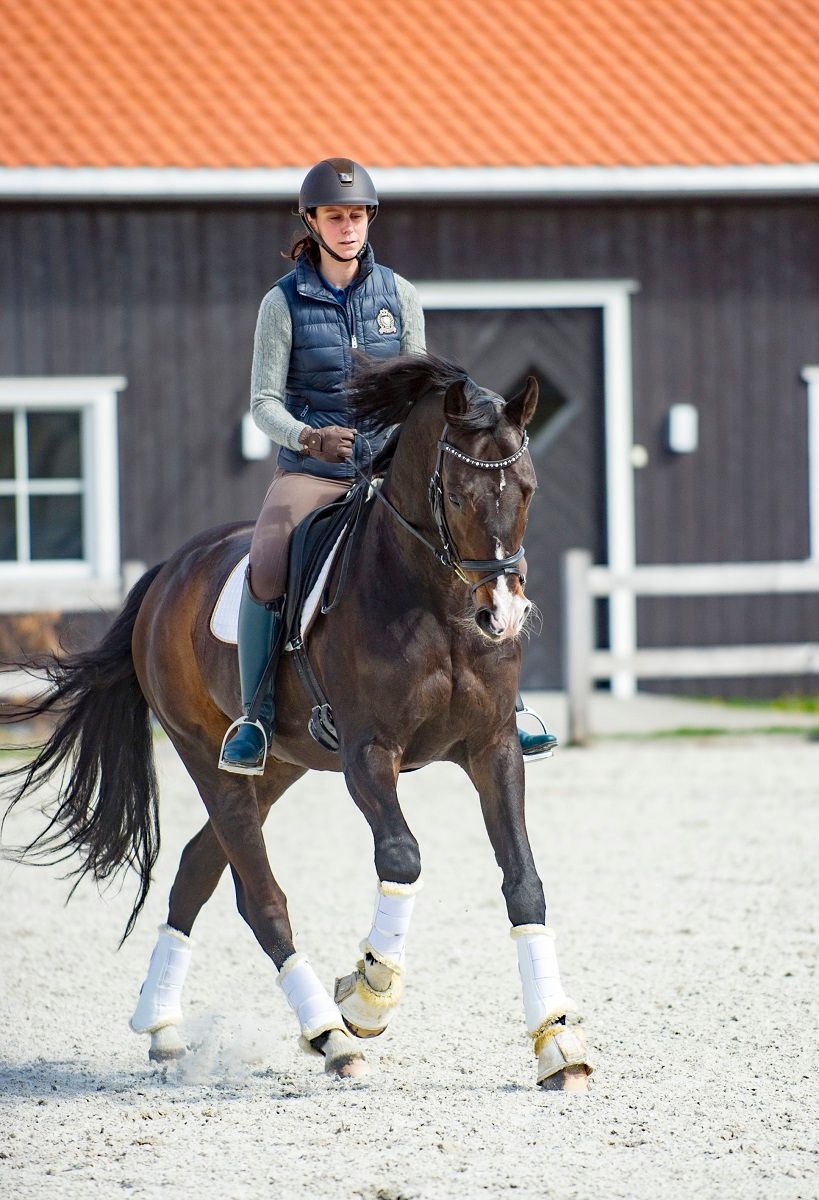 Vi dressurryttere har nok litt å lære av sprangrytterne når det gjelder å bruke galoppen riktig. I sprangen skal galoppen være elastisk og hesten skal kunne springe av bakken raskt, samles raskt, vende raskt. I sprangtrening brukes mye bommer og kavaletter, noe det ikke er feil å bruke for dressurhesten også. Bommer og kavaletter gir bevegelse i ledd, i hele kroppen, hesten må tenke og løfte godt på beina. Ser vi oppover i klassene innen både sprang og dressur, rir vi samme type galopp. Spranghestene er litt mer åpne i formen, men hvis du sammenlikner bøyningen i hasen til en spranghest i avspranget og dressurhesten i en galopp-piruett, ser du at det er samme grad av samling. Så jeg tror vi som dressurryttere godt kan være mer på sprangbanen og se hvordan vi kan utvikle galoppen som gangart og bruke de teknikkene vi ser de bruker der.