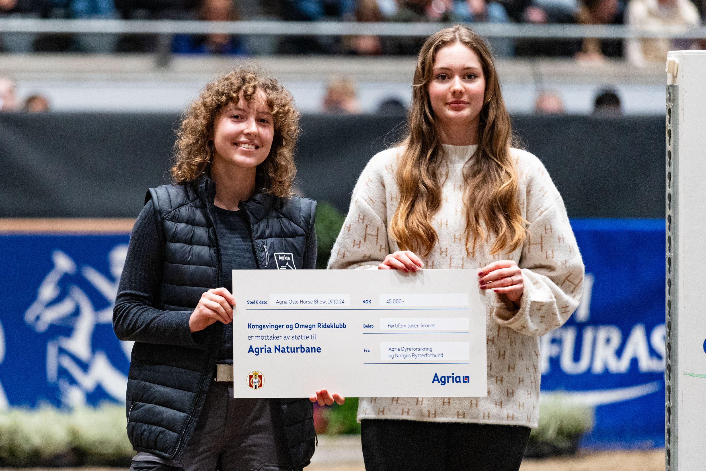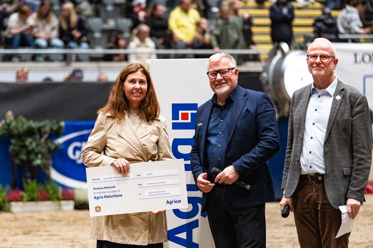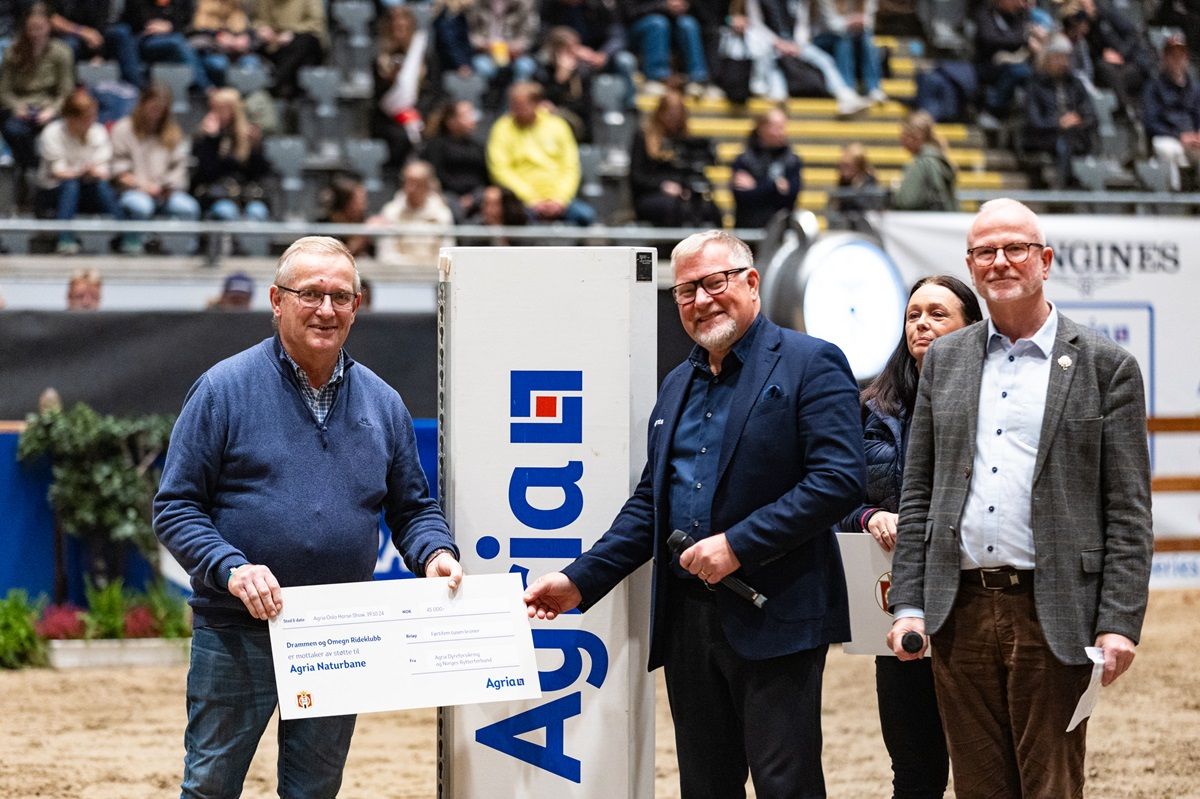 Siden 2020 har Agria Dyreforsikring i samarbeid med Norges Rytterforbund delt ut midler til å etablere en Agria Naturbane. Lørdag kveld under Agria Oslo Horse Show kunne representanter fra fire klubber møte frem for å motta kroner 45 000 hver.