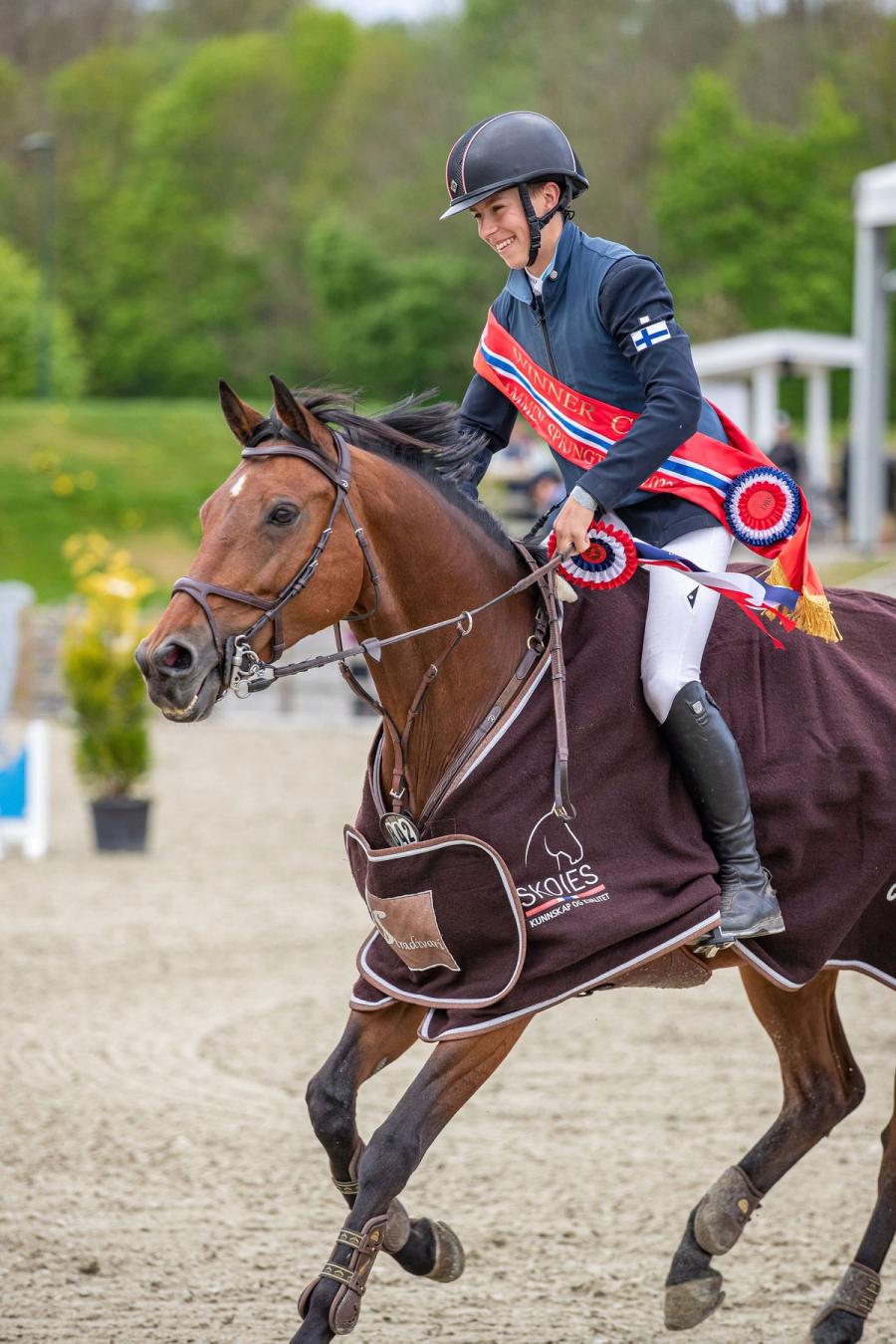 var nemlig blant de åtte som gikk videre til omhopping, og gjennom en lynrask, men godt disponert feilfri runde som ble klokket inn til 36.45, ble seier i klassen sikret. Gjestende ekvipasjer fra Finland, Sverige og Danmark fulgte på de nærmeste plassene – med norske Tuva Petrine Kristiansen på Stella P og Madelen Ossletten Fuglstad på Ibalou plassert som nummer ni og elleve.