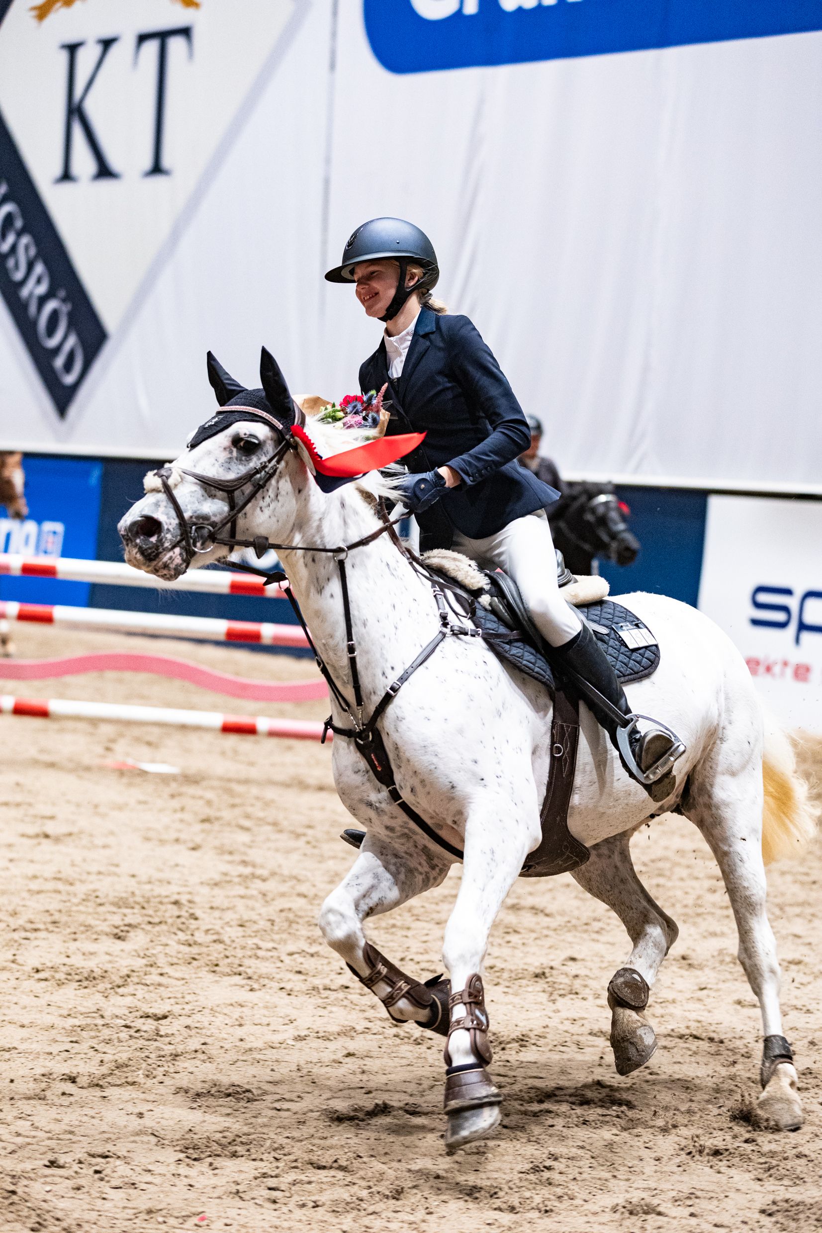 Wilma Tjälldén fra Atlungstad Rideklubb leverte på sin side vinnerrunden i MB på enerponnien Malbay Sean, etterfulgt av Mie Sofie Nielsen Johannessen/ Sportlights Baxterfra Bergen Rideklubb og Solveig Tønnesen-Stangrland/ Move on Lady Primrose fra Bærum Rideklubb som nummer to og tre.