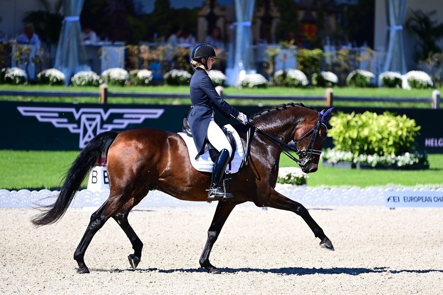 Mathilde Merethe Klaesson og Sandbæks Rio El (Skovens Rafael x De Noir, oppdretter Eigil Kirkegaard Nielsen) starter klokken 10.15, mens Isabel Freese og Total Hope (Totilas x Blue Hors Don Schufro, oppdretter Anette Juhl) skal i ilden klokken 14.45. Ettersom Norge kun har tre startende, er alle tellende for lagresultatet.