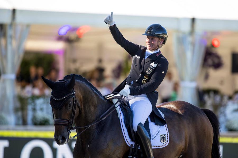 Britiske Carl Hester troner øverst på resultatlisten med sin Fame (Bordeaux x Thodium, oppdretter M. Gerritsen) etter et resultat på flotte 78,540 %. Det holdt til en ledelse foran dressurdronningen Isabell Werth/DSP Quantaz (Quaterback x Hohenstein, oppdretter Dr. Kathrin Damm) som ble belønnet med 77,174 %. Litt avstand ble det ned til den andre tyske ekvipasjen, Matthias Alexander Rath og Thiago GS (Totilas x Warkant, oppdretter Ann-Kathrin Linsenhoff), de kunne notere seg 74,845 % og en foreløpig tredjeplass av i alt 34 startende i dag.