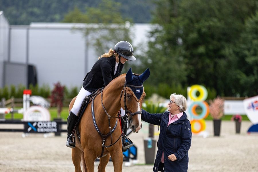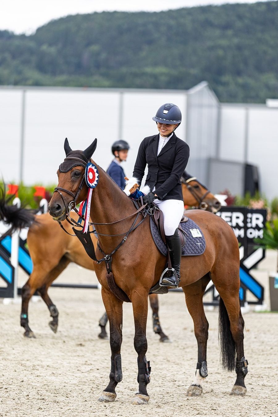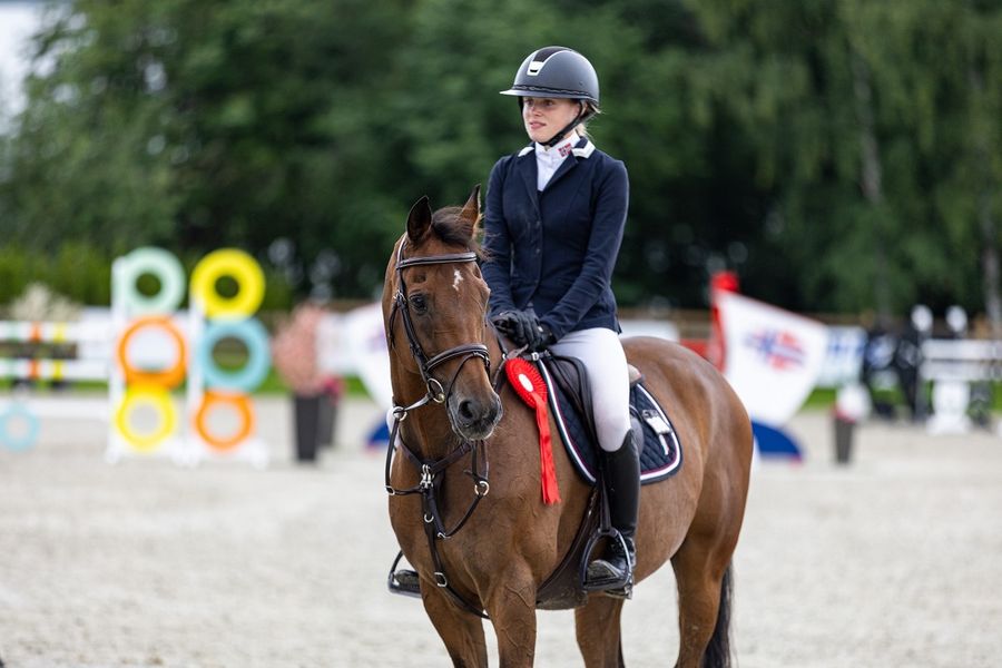 I 2022 tok Drøbak-ekvipasjen Ada Braaten Johnsen/Plietsch (Perigueux/Coronet Obolensky, oppdretter Heinrich Ramsbrock) sølvet i klassen for unge ryttere. I år har de innledet lovende, med feilfri runde, beste tid og seier i første avdeling over 1,40 m høye hinder. Andreplassen gikk til klubbvenninne Emilie Røsting Øverby/Lexi-Lou (Bøgegårdens Dicapo/Carson Ask, oppdretter Anne Grete Johnson Lieng) foran Mira Høidal/Bronx (Bravour/Cardento, opdretter Stall Xenta) fra Fredrikstad og Omegn Rideklubb. Som nummer fire og første uplasserte kom Hannah Synnøve Nicander Nyhaug/Gezel (Zirocco Blue/Indoctro, oppdretter A.H.J.M Kerstens) fra Grenland Ryttersportsklubb, fulgt av fjorårets bronsevinner Hanna Cecilie Wicklund/Fantomas (Viceroy T/Peter Pan, oppdretter R.W. Bongers) fra Bærum Rideklubb.