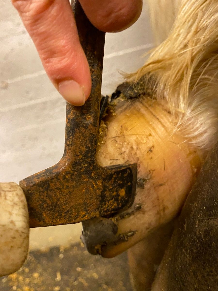 Skoen er bøyd: Er skoen bøyd, men sitter på, kan du vurdere om den kan sitte på. Hvis skøen er veldig bøyd skal den av, men du kan gjerne sende et bilde til hovslageren din og rådføre deg.