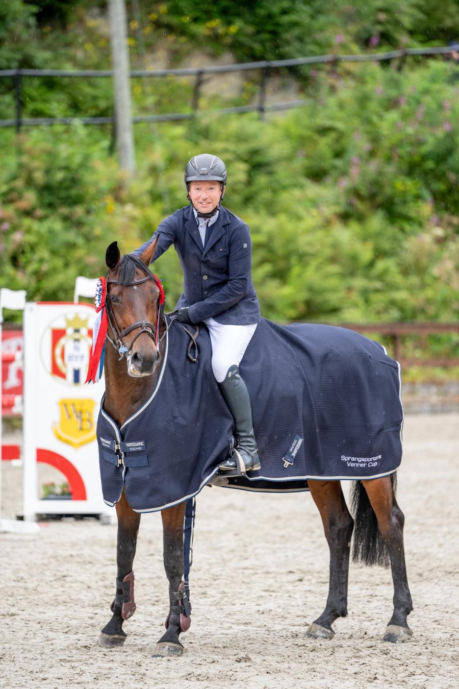 Lørdag kveld på sprangbanen i Bergen ble avsluttet med Sprangsportens Venner Cup. Til topps i denne klassen gikk en velridende Drammens-rytter; Morten Wasmuth/Avanti Diamani W (Contant Q/Tailormade Stardust) fra Drammen og Omegn Rideklubb foran Lisa Stigen Birkeland/Ariel (Athenes d’Amaury/Noble Champion, oppdretter Ingrid Rholing) fra Bergen Rideklubb og Martine Berheim Skår/Dion.