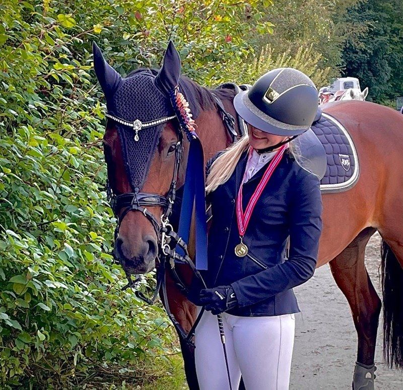 Hun er på vei mot noe nytt, stort og spennende. Men hun er trygg. Hun har med seg ridelæreren gjennom alle år, fra de første rundene i skritt i rideskolen til 1,25 m med egen hest.