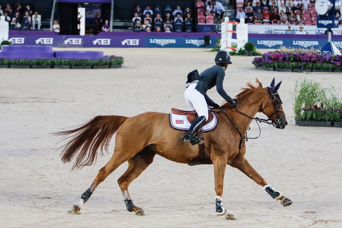 Victoria Gulliksen er første norske rytter ut med Equine America Papa Roach (Perigueux/Zeus), med Marit Haarr Skollerud som nummer to med Lancaster (Fantomas de Muze/Crown Z). Cecilie Hatteland er nummer tre ut for Norge, med sin Missy (Gelhas’ VDL Emilion/Heartbreaker), mens ankerrollen er det Johan-Sebastian Gulliksen/Ambrosio d’Alcy (Cabdula du Tillard/Calvaro F.C.) som har.