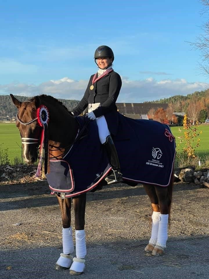Therese Bragstad med sin Double Donnerhall e. Dimaggio/Sir Donnerhall fra Moldegaard Ryttersportsklubb dro fra på oppløpssiden søndag under mesterskapet på Vallermyrene i regi av Grenland Ryttersportsklubb. Da hevet hun lørdagens resultat på 66,589 % de prosentpoengene som sikret en klar gullmedalje – med 68,700 % var mesterskapstittelen et faktum.