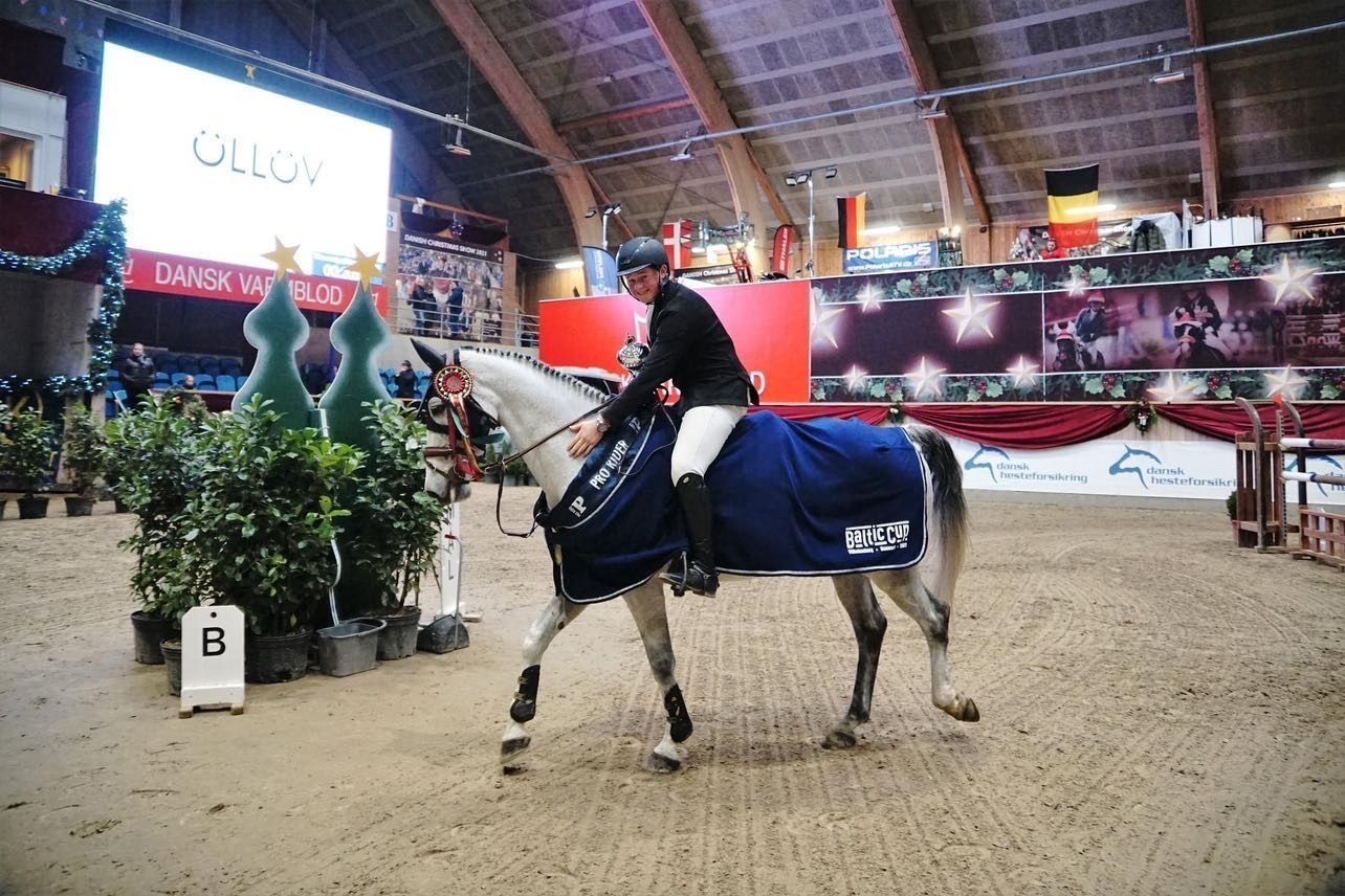 - Det var en spennende klasse, hvor jeg fikk kjempe mot noen av de beste U25- og juniorrytterne i Norden. Det var en helt magisk følelse å endelig kunne banke inn en feilfri runde i 1,40 m med Erasmus. Og ikke minst å ri om gull i Baltic Cup Trophy-finalen med Cardigan og vinne! Hadde ikke trodd det selv, forteller Rasmus.