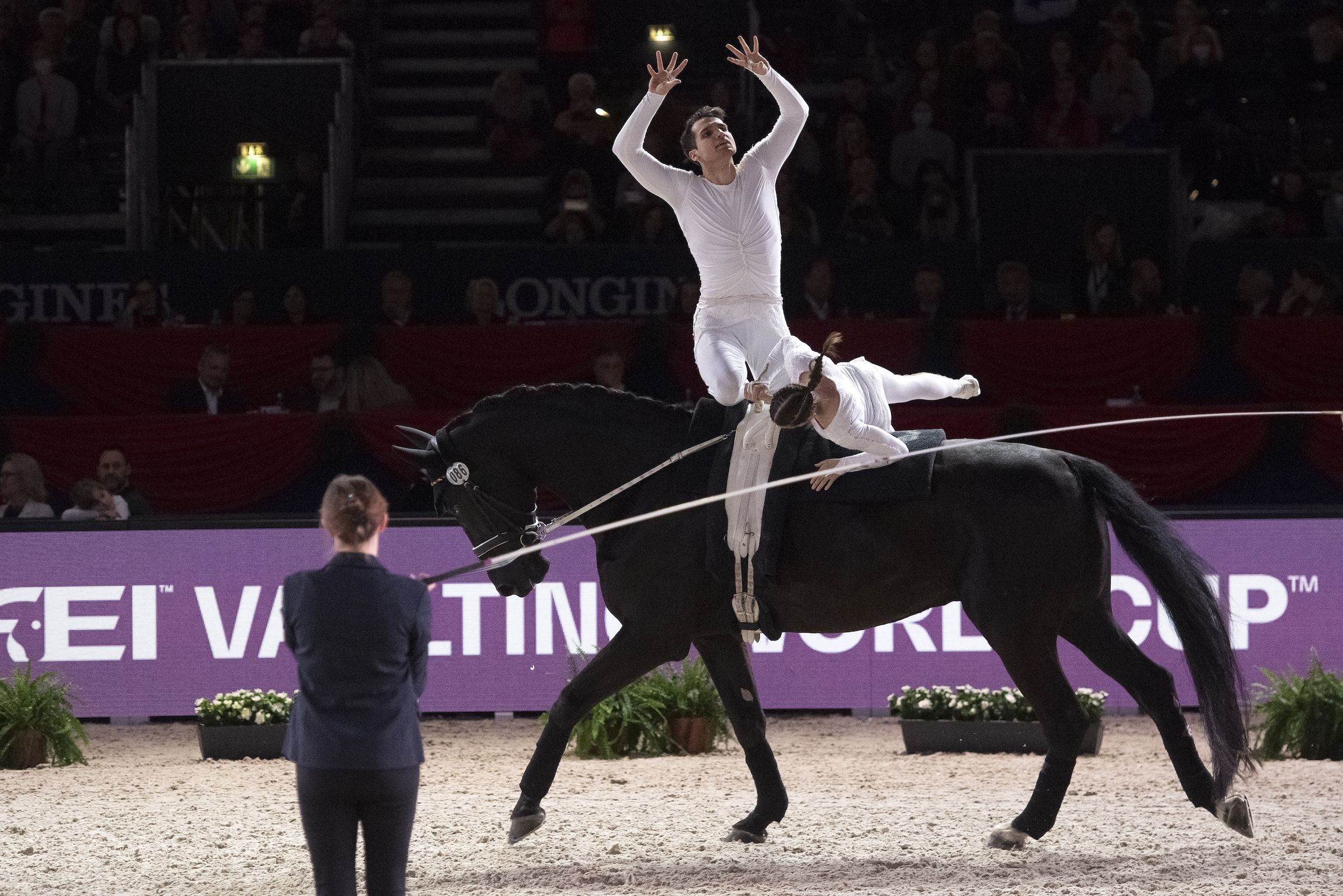 Tysklands meritterte Pas de Deux-utøvere og regjerende verdensmestere i voltige, Janika Derks og Johannes Kay, takker nå av i toppsporten. Duoen ga både dommere og publikum gåsehud gjennom et på det nærmeste perfekt program under gårsdagens kürfinale presentert av HIRMER HOSPITALITY sammen med longør Nina Vorberg og oldenburgeren Humphrey Bogart. De ledet etter første dag i årets verdenscupfinale, og gjennom et program der høydepunktene kom på løpende bånd og karakteren 10.0 ble gitt for det kunstneriske, ble finaleseieren sikret gjennom en totalscore på 8.836. Østerrikes Romana Hintner og Eva Nagiller med longør Peter Wagner og hesten Dr. Grunow ble nummer to med en samlet poengsum på 8.016, mens tredjeplassen i årets Pas de Deux-finale gikk til Tysklands Chiara Congia og Justin van Gerven med løngør Patric Looser og hesten Calidor 10 med 7.960.
