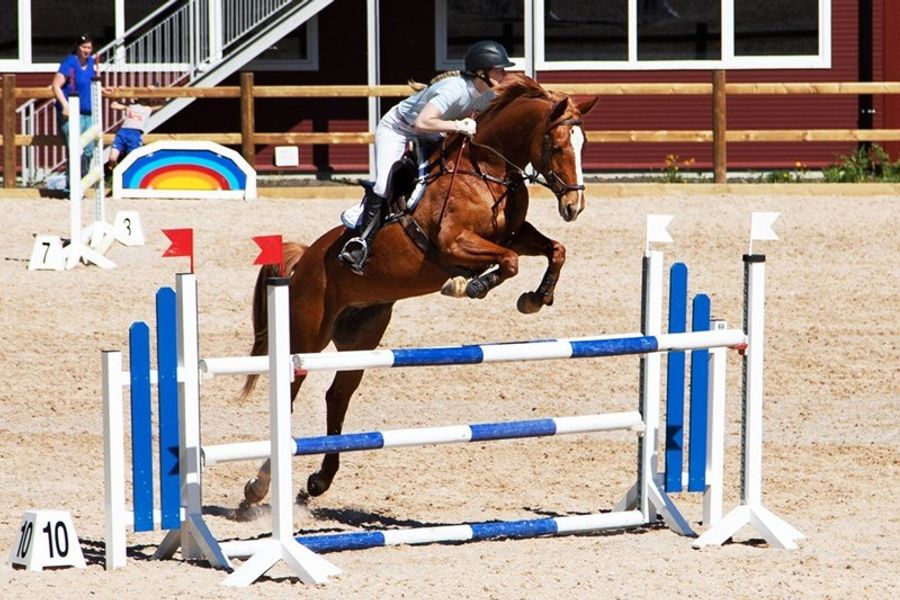 I strålende sol med utsikt over Mjøsa i bakgrunnen, ble det rekrutteringsstevne med klubbstevne klasser i 50 og 60 og distriktsstevne fra 70 til 120. Det var tilsammen 45 startende. Sprangbanen på Norsk Hestesenter har gjennomgått en stor oppgradering siden sist, og med nytt Dry Ecotrack underlag og størrelse på 100x65 meter er det blitt Innlandets fineste bane.