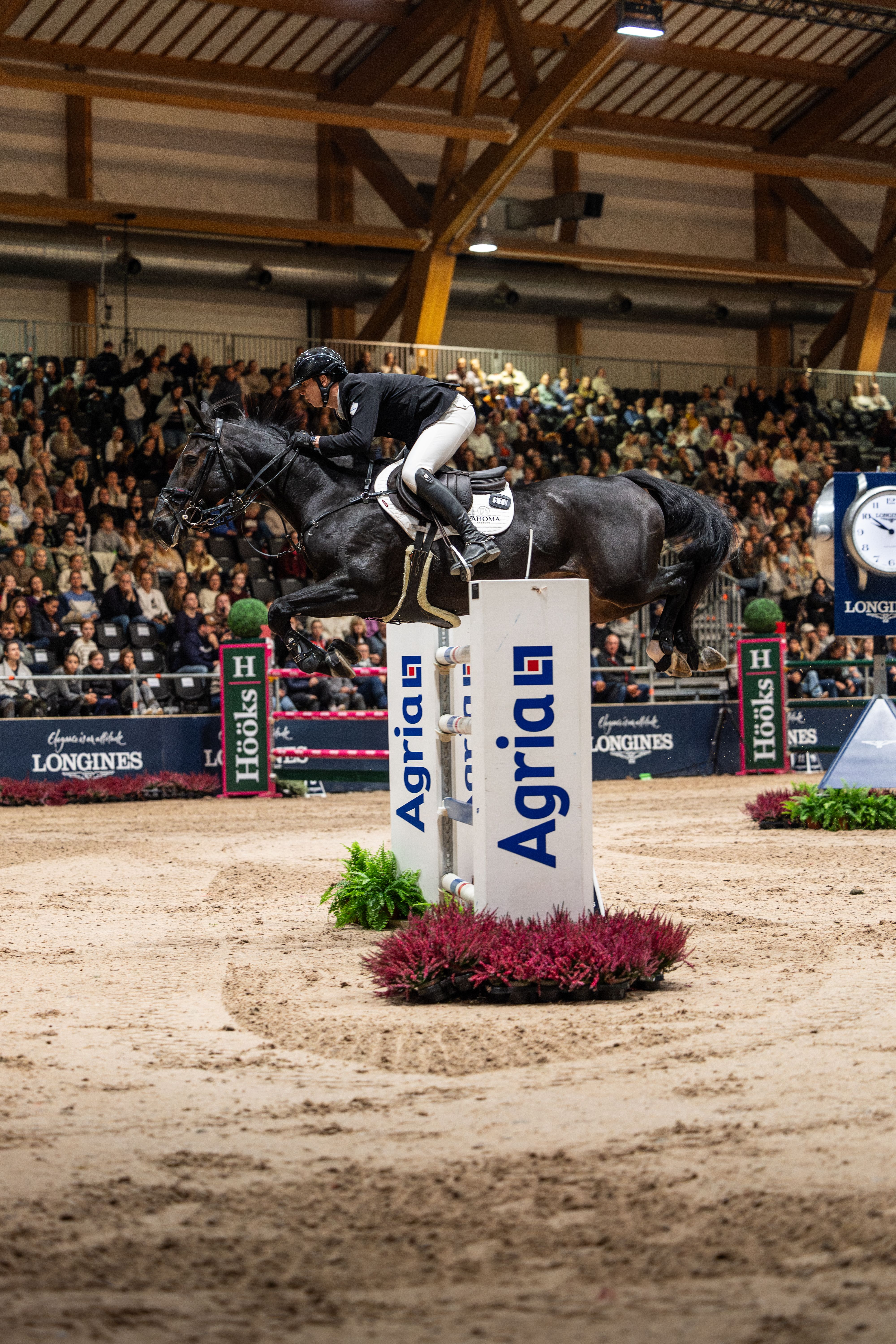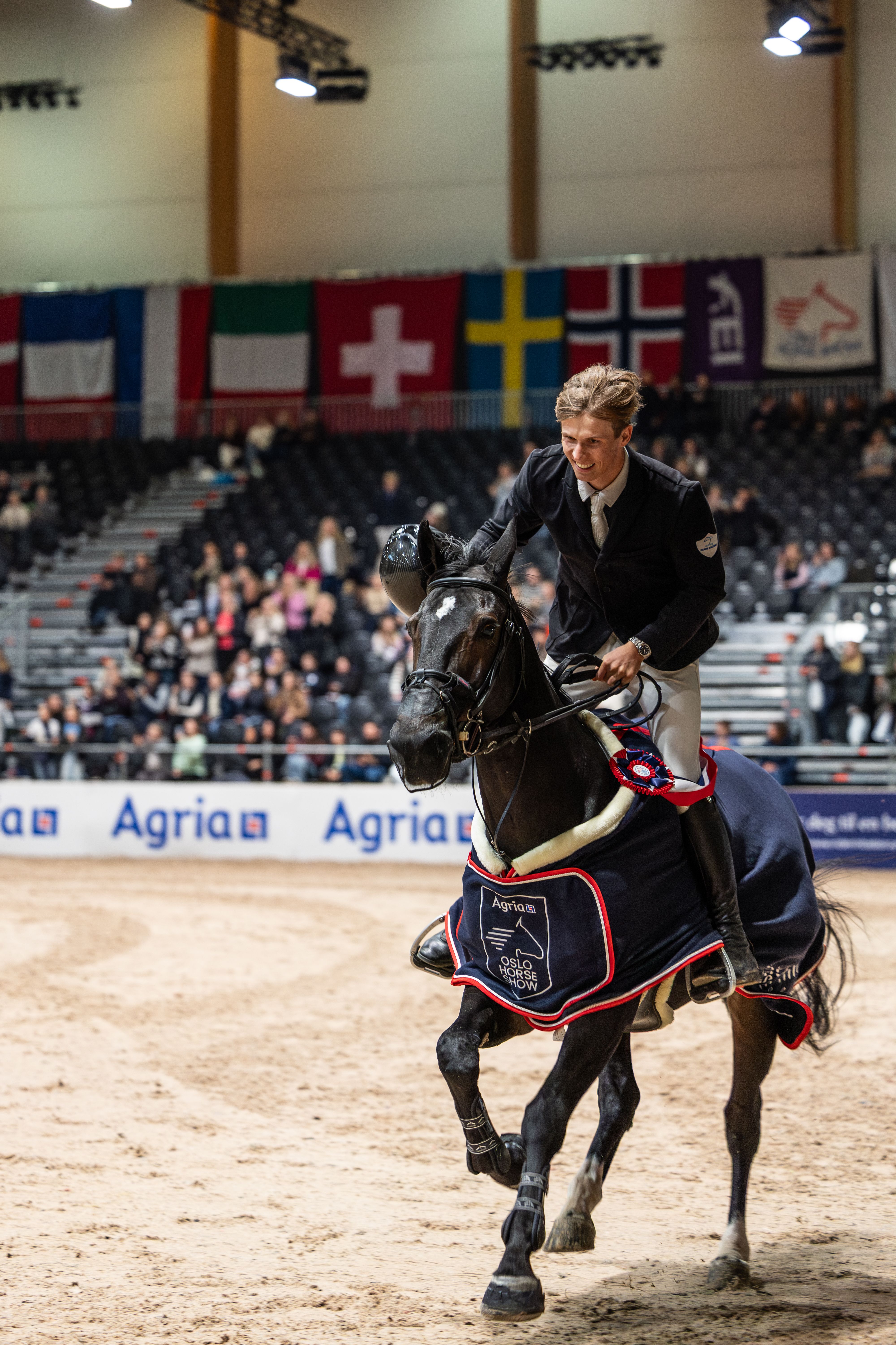 Årlig har femstjernersdelen av Agria Oslo Horse Show to virkelig store sportslige høydepunkter på programmet. Søndag ettermiddag hoppes åpningsetappen av Longines FEI Jumping World Cup™ 2025 – 2026 i gang, men allerede denne lørdagen var vi vitne til stor sport. Punktum for gårsdagens innholdsrike program ble nemlig satt med CSI5*-W Rikstoto Grand Prix 1.55 m, der årets startfelt rommet 43 ekvipasjer. Blant disse var hele ti norske.