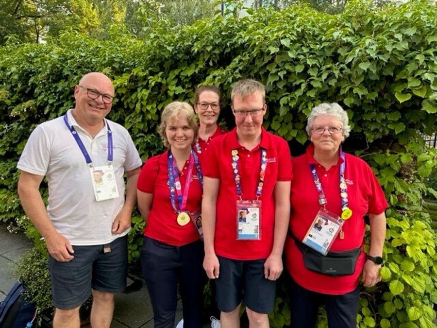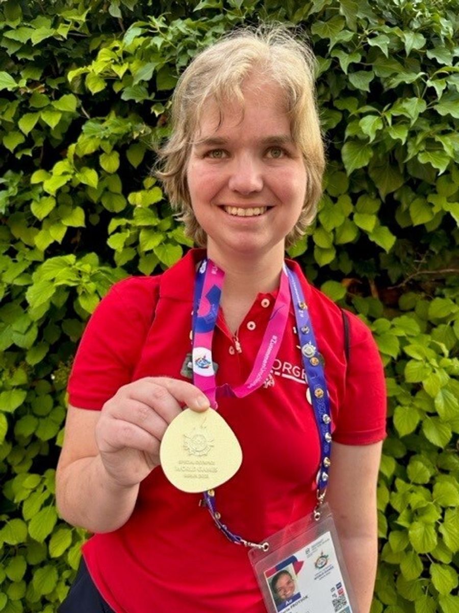 Maria Nyborg Frøysok klinket til på første mulighet under Special Olympics World Games i Berlin i dag! Sammen med hesten Toffee toppet hun med god margin resultatlisten i sin divisjon i dressur C(I) og dermed tok hun gull på første forsøk.