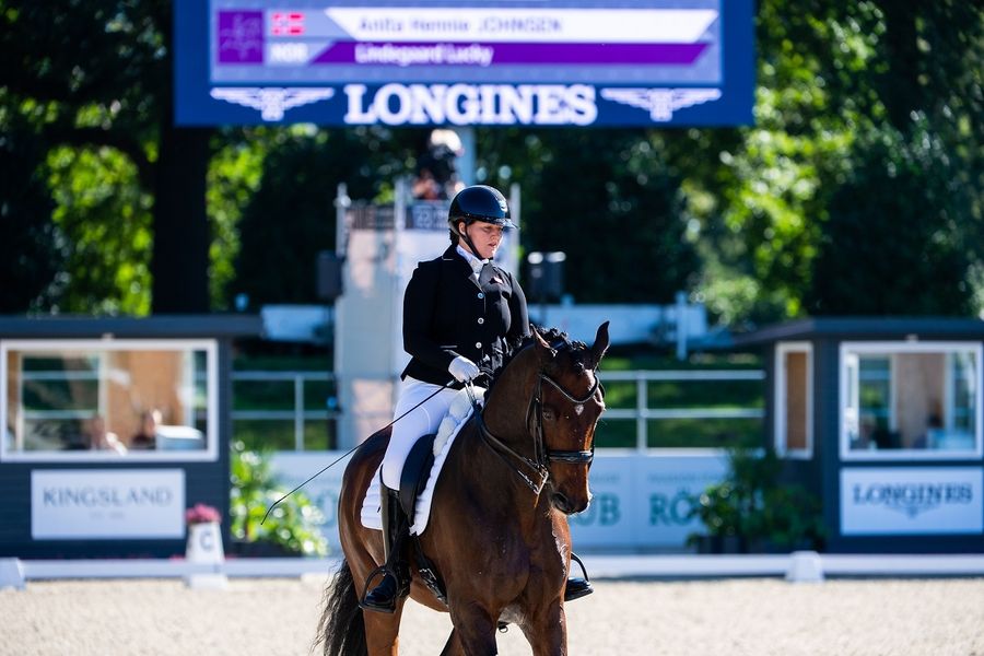 Også hestene trives åpenbart på den store arenaen til Ludger Beerbaum, noe Hege Størseth skulle merke da de entret den for første gang i konkurranse i dag. Hønnerups Lidell (Don Olymbrio x Classic, oppdretter Stutteri Hønnerup) hadde rett og slett litt ekstra energi på lager, noe som førte til et litt friskt galopp-program. Hege taklet det glimrende, og gjorde en god jobb med å få sin flotte hoppe tilbake på bedre tanker, og resultatet til slutt ble 63,836 %. Lidell har forhåpentlig fått ut sin glade energi og er klar for ny konkurranse når paret får en ny sjanse til å imponere dommerne om et par dager når de skal ut i lagkonkurransen.