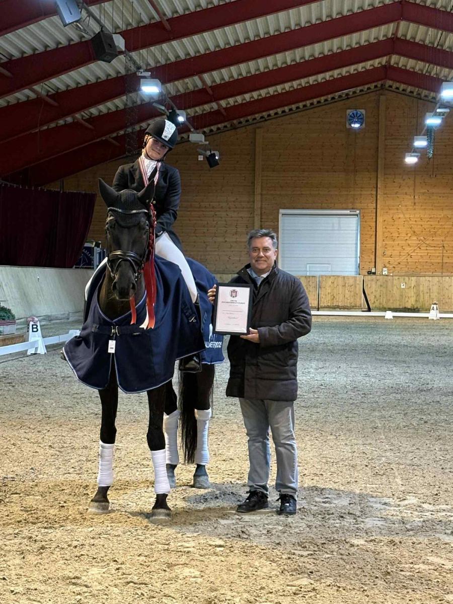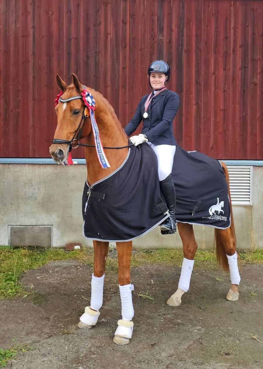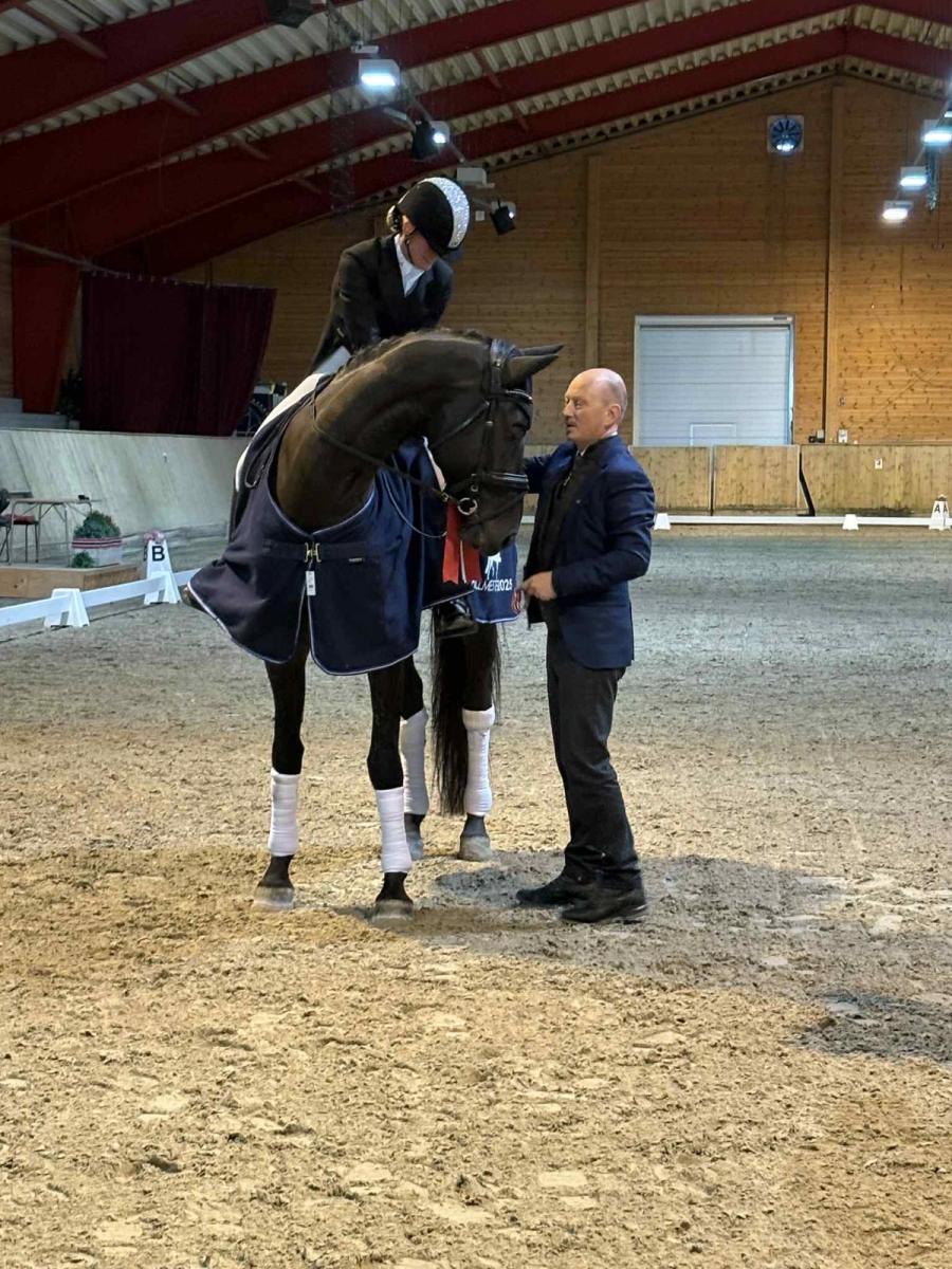 -Hun viste allerede på veterinærbesiktigelsen at hun hadde god kontroll på sin 4-åring, og loset en elegant type hest også fint gjennom på banen med stødig og positiv ridning. Det blir spennende å følge denne videre oppover årsklassene, sier Rune.