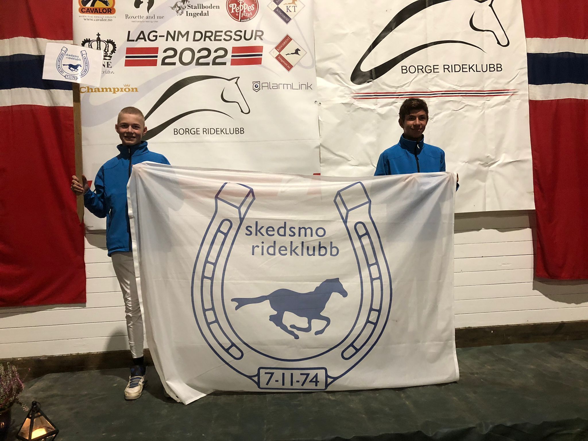 Det er Troy Grønvold Belgen og Alexander Dalgaard Ranum som utgjør det rene guttelaget som Skedsmo Rideklubb har med seg til Fredriksborg i helgen. Strålende innsats av begge to, med henholdsvis Strandgaards Dance Forever (Dance Star At/Halifax) og Steendieks Cunningham (FS Chambertin/FS Don’t Worry) har gitt laget, som har Thomas Ranum som lagleder, 139,714 poeng på konto. Dermed har gutta en ledelse på over 2,5 prosentpoeng mot nummer to når de stiller til start for andre gang søndag. Borge Rideklubb, med Linda Harlem, ligger som nummer to med 137,132 poeng. Disse poengene er det Karen Marthine Tandberg/Gold Queen og Thea Victoria Harlem/Schermeer’s Hof Simba (Bodo/Cupkeshof Winobert) som har ridd inn.