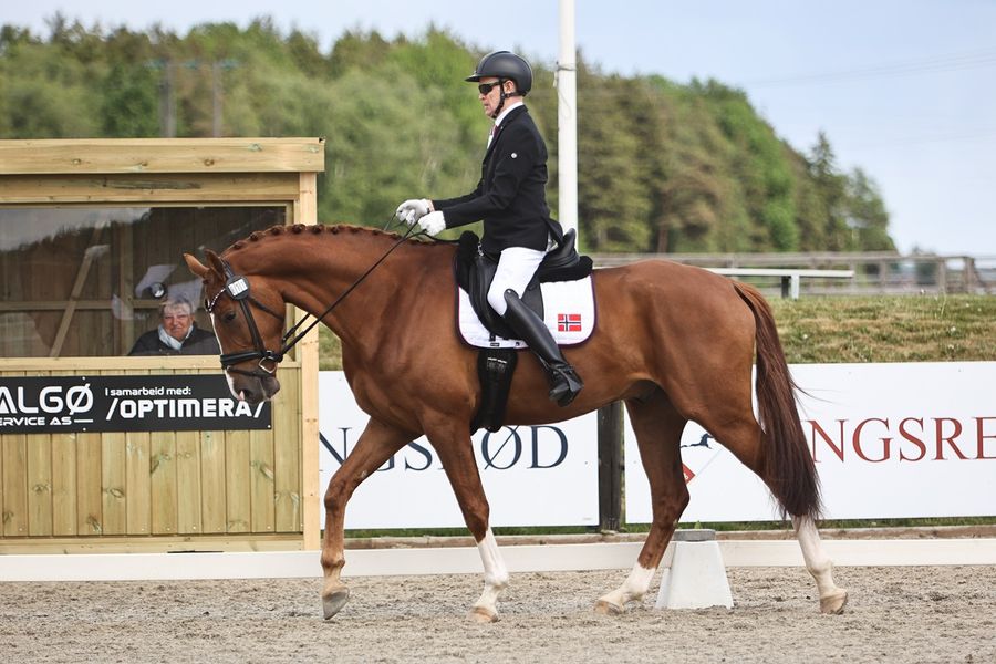 Hele fire paralympiske ryttere er med i paradressurtroppen som rir opp midtlinjene hos Borge Rideklubb denne helgen – to av dem gjør det med helt nye hester. Det ser definitivt ut til at Jens Lasse Dokkan har enda en stjerne på gang i sin røde, vakre Dockland V (Gut Wettlkam’s d-Avie Frh/Don Deluxe, oppdretter Ole Christensen). Den seks år gamle vallaken utstrålte harmoni og glede over oppgavene sine mens Jens Lasse loset ham rutinert rundt i CPEDI3* Para Grand Prix grad I, med 65 % blank som resultat. Det må kunne kalles en lovende start på karrieren sammen.
