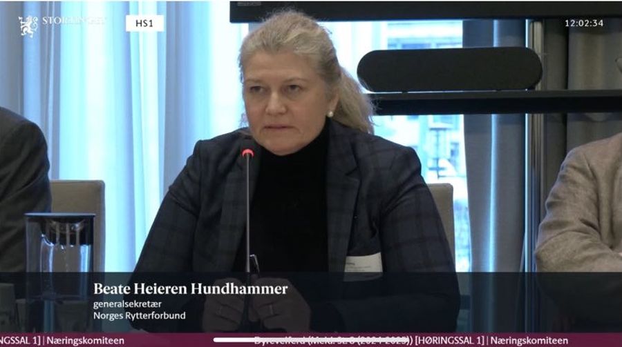 Norges Rytterforbund har gitt et skriftlig innspill til denne høringen, og i dagens muntlige høring tok generalsekretær Beate Heieren Hundhammer for seg hovedpunktene i denne.