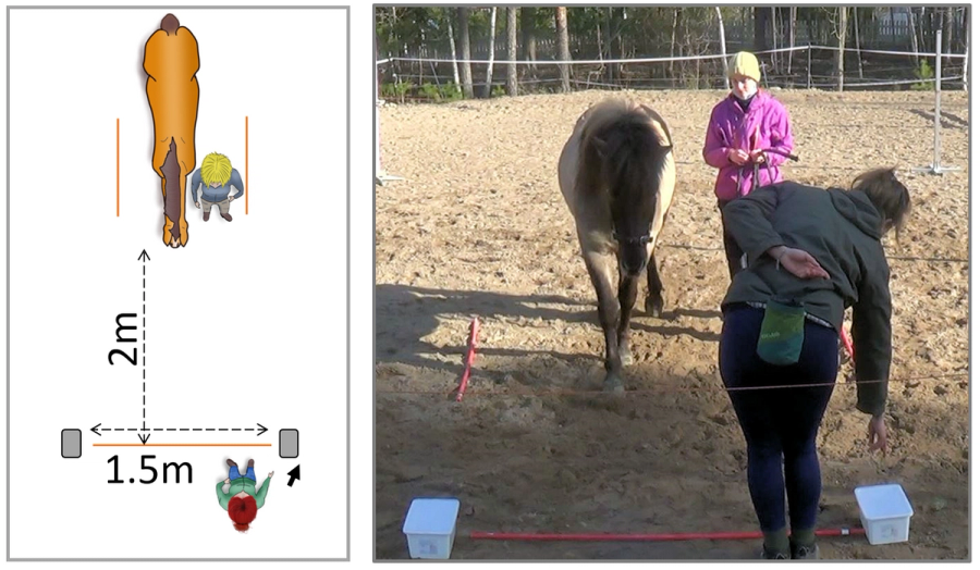 Selve studien gikk ut på at den aktuelle personen - enten eieren eller forskeren - stod mellom to bøtter, med en gulrotbit som lå skjult i en av dem. Hestene ble leid av en assistent, slik at de stod foran personen. Deretter ville personen bevege seg mot en av bøttene, stirre og peke mot den for å indikere at hesten skulle gå til den bøtta. Hesten ble så sluppet og kunne velge om den ville gå til bøtten det ble pekt mot, eller den andre. Hvis hesten fulgte anbefalingen til personen, ville vedkommende åpne bøtta og la hesten får gulrotbiten. Om hesten derimot valgte den andre bøtte ville den ikke få gulrot, men ble fanget inn igjen. Eksperimentet ble gjentatt ti ganger per hest, og forskerne analyserte hvor mange ganger hestene valgte å følge de menneskelige signalene.
