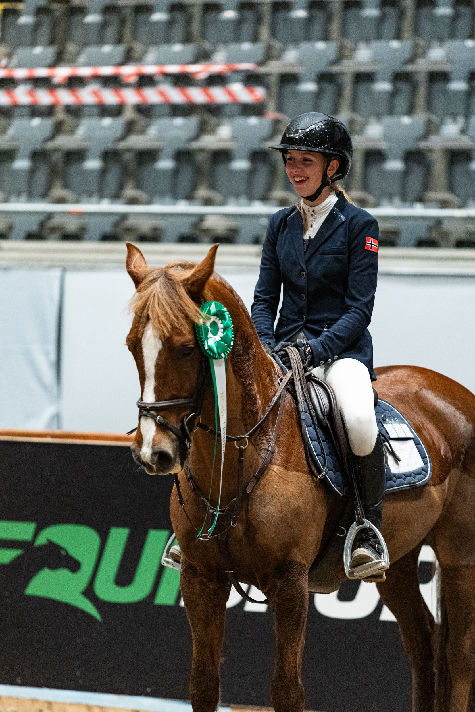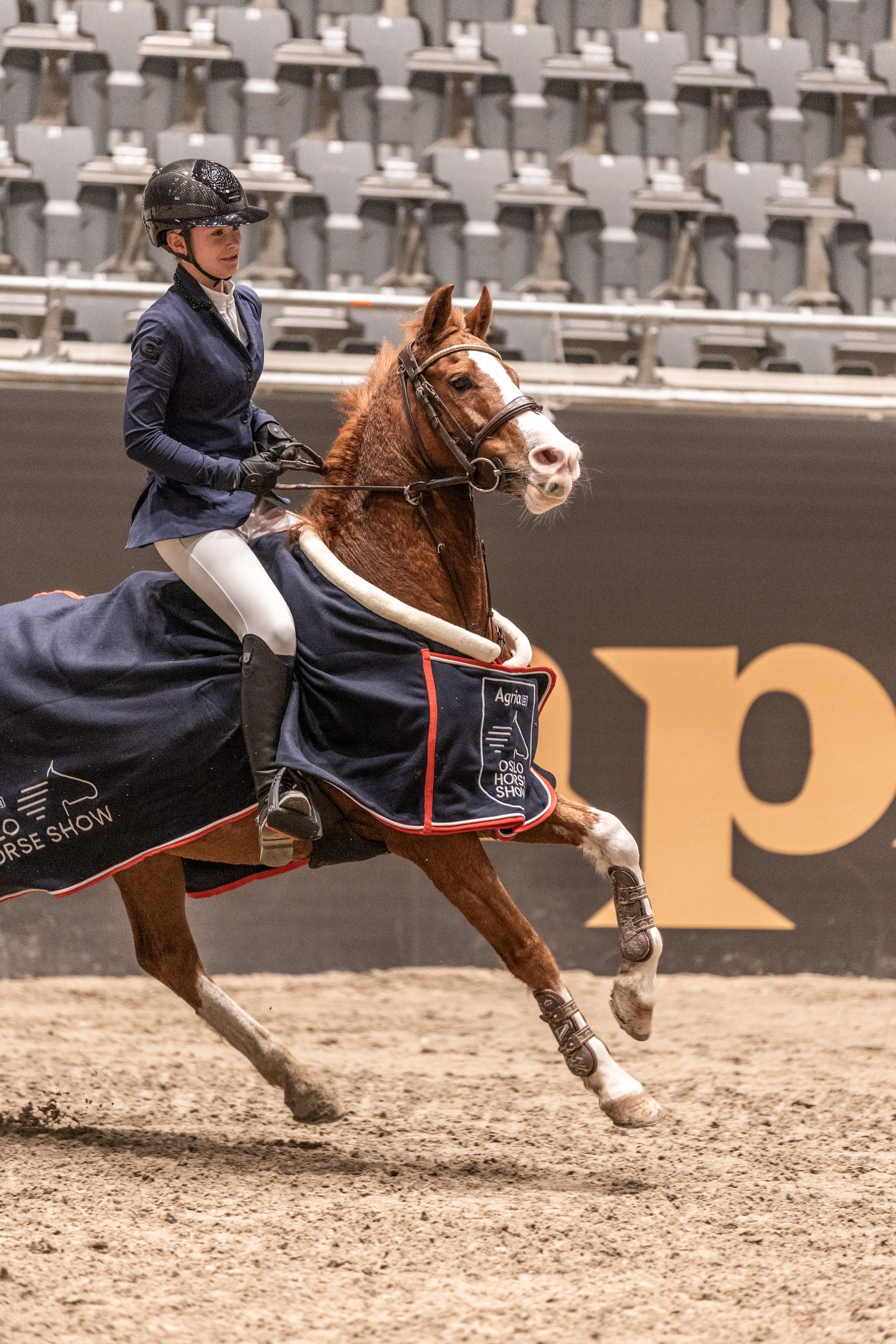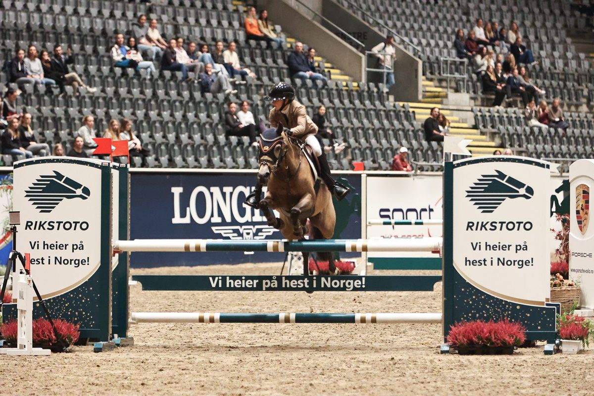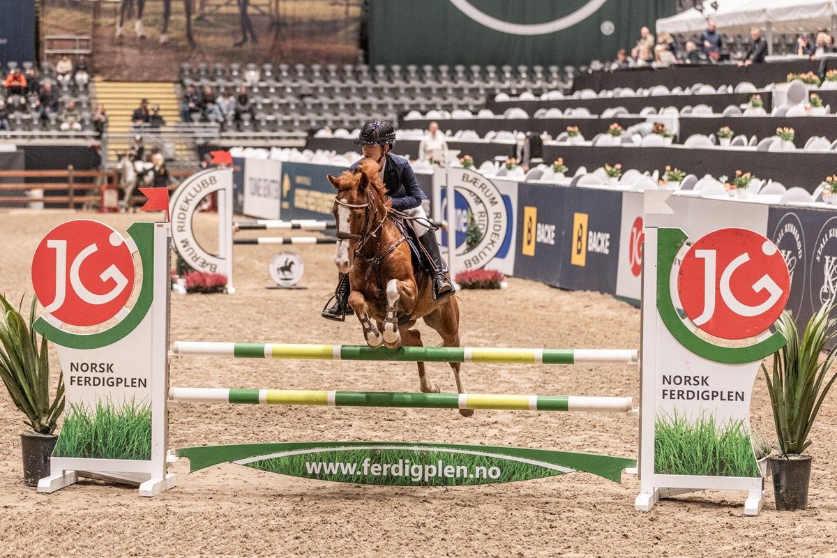 Andrea Alme-Meijers fra Hønefoss og Ringerike Rideklubb var siste rytter ut og hadde presset på seg etter en god runde fra Amalie Rieber-Mohn i lørdagens MB+5 Norsk Ferdigplen Cup for ponni kategori 2. Andrea holdt hodet kaldt, og suste sammen med sin Vognmandgårdens Ariel til seier for andre gang i løpet av Agria Oslo Horse Show.